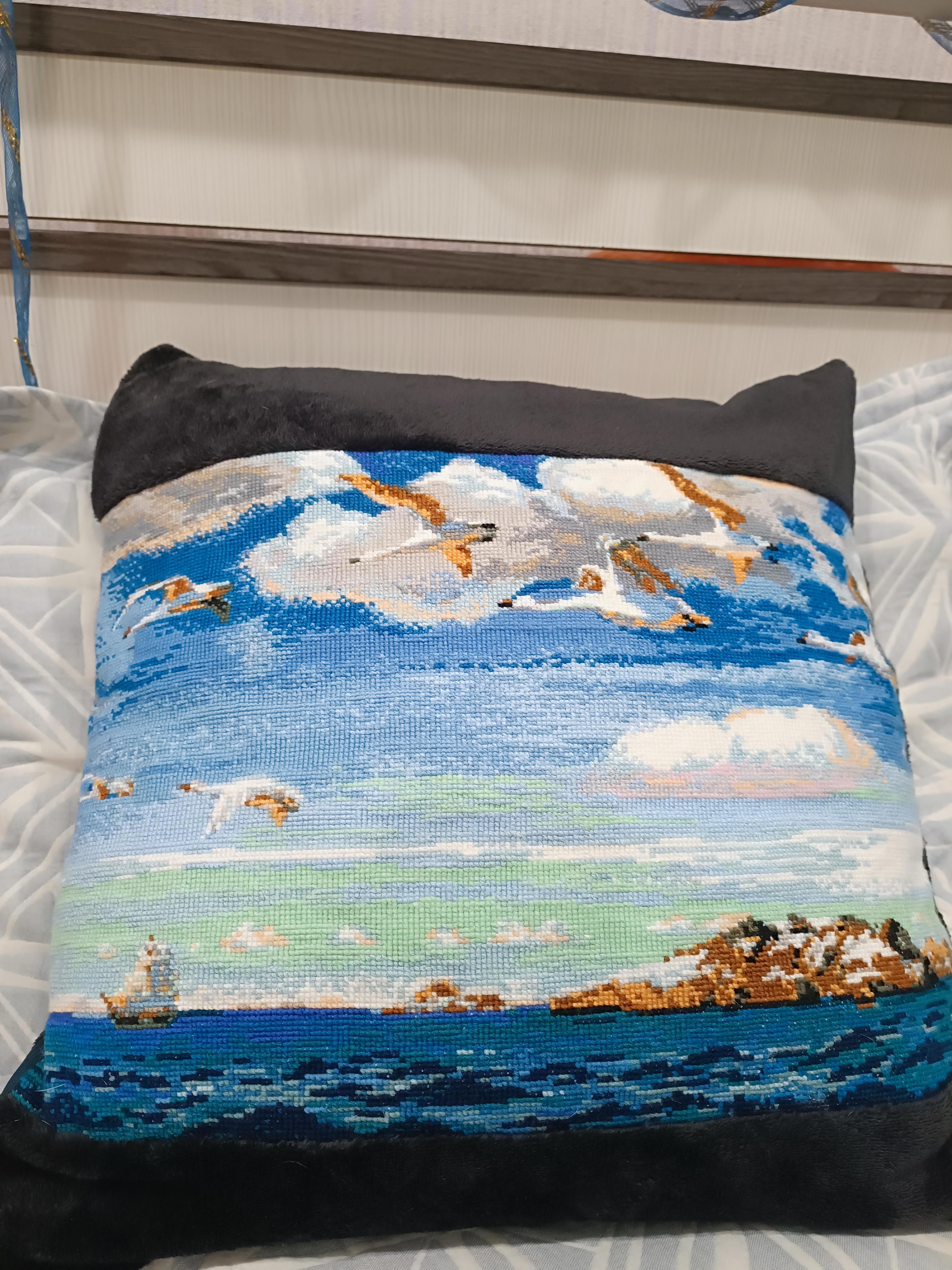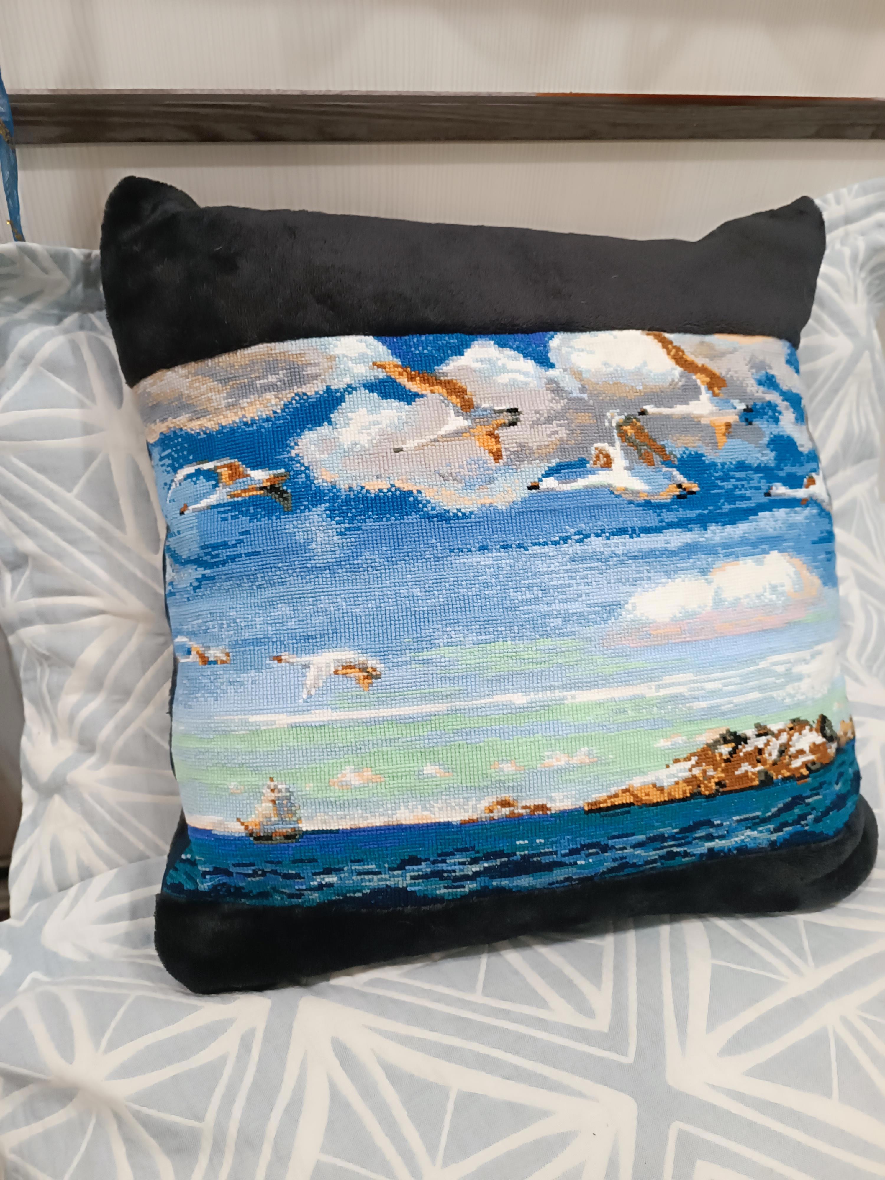 И вдруг, звёзды сошлись! Точнее, сошлись пледик и вышитое море. А у Гриши теперь есть подушка))