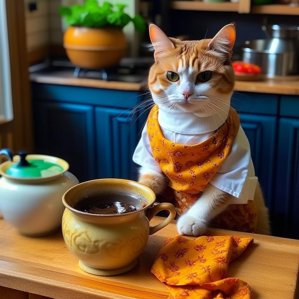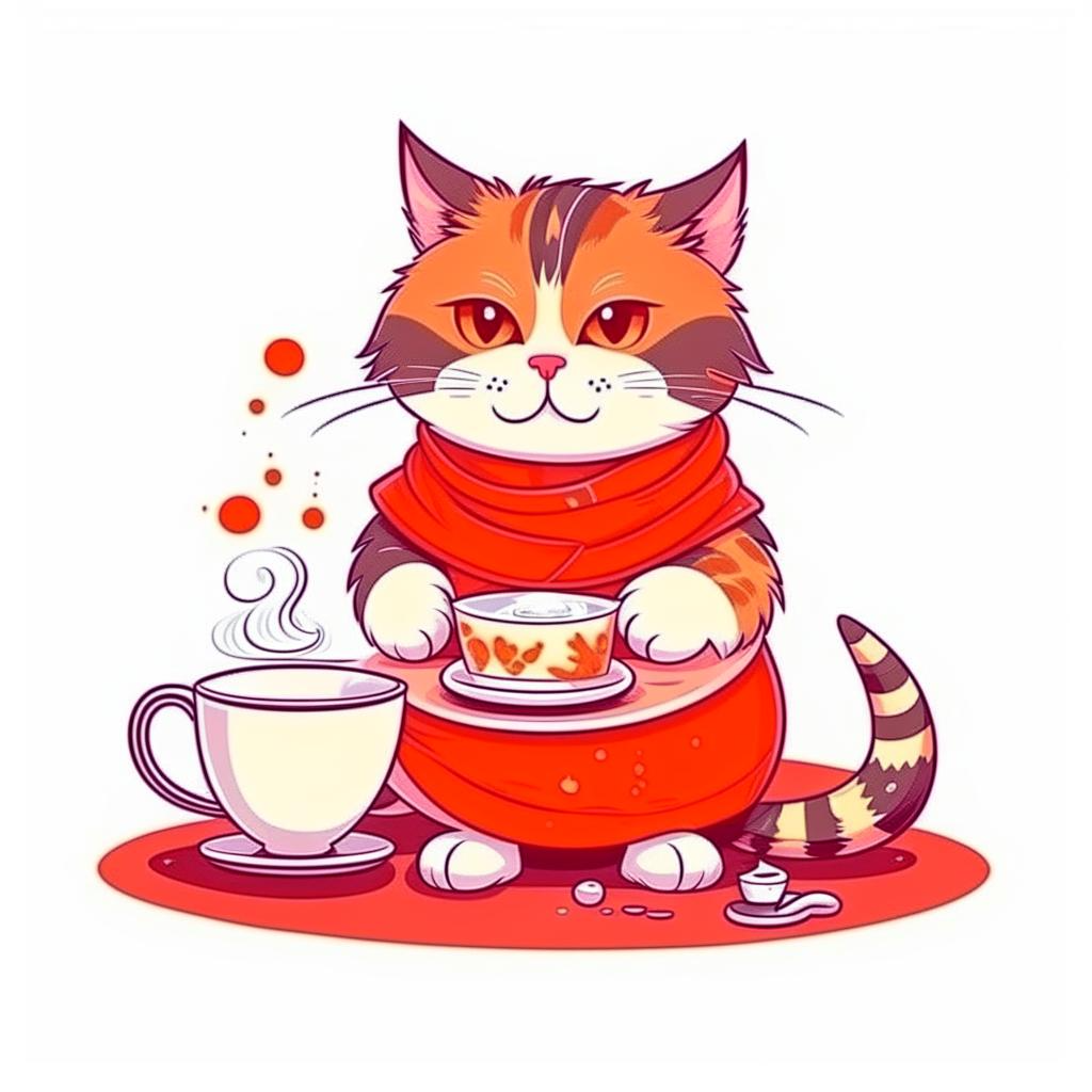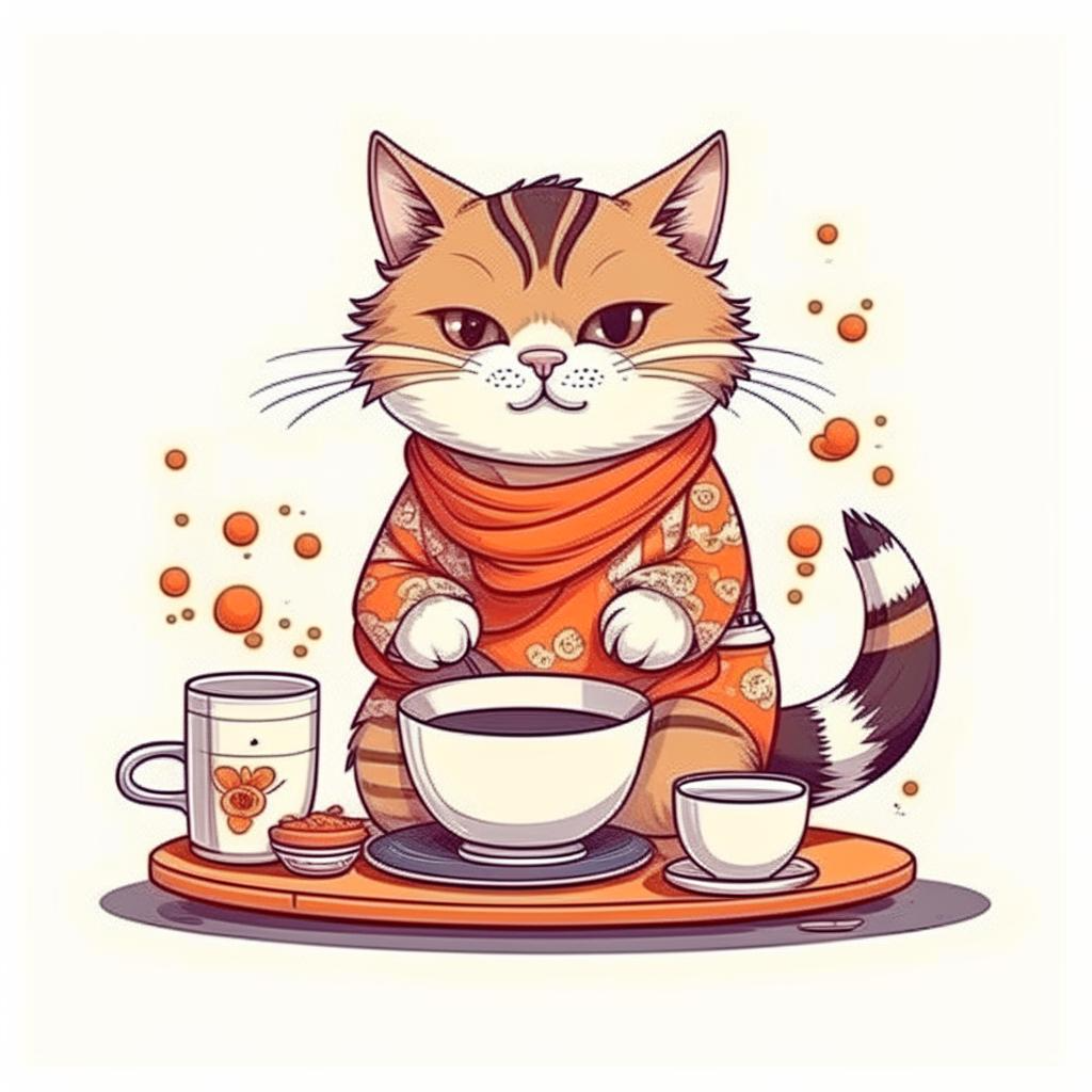 Друзья! Вкусного вам кофеманства и чаепития. Нейросетевые котики угощают и ухаживают: