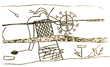 Символика экстатического путешествия к Центру Мира господствует в изображениях на бубне. Удары бубна в начале сеанса, которыми шаман созывает духов, чтобы заточить их в бубне, прелюдия к этому путешествию. Поэтому бубен называют "шаманским конём".