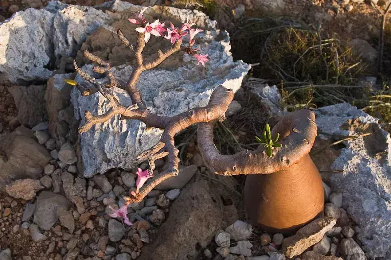 Роза пустыни (Адениум Сокотранум) совсем не похожа на розу, но все равно прекрасна. Это растение считается одним из самых красивых цветов пустыни.