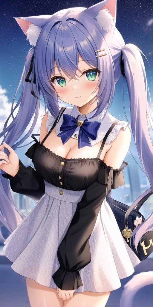 Но вот кошкодевочек на запрос cat girl он вообще без проблем выдает. Как будто он специально заточен на их рисование)