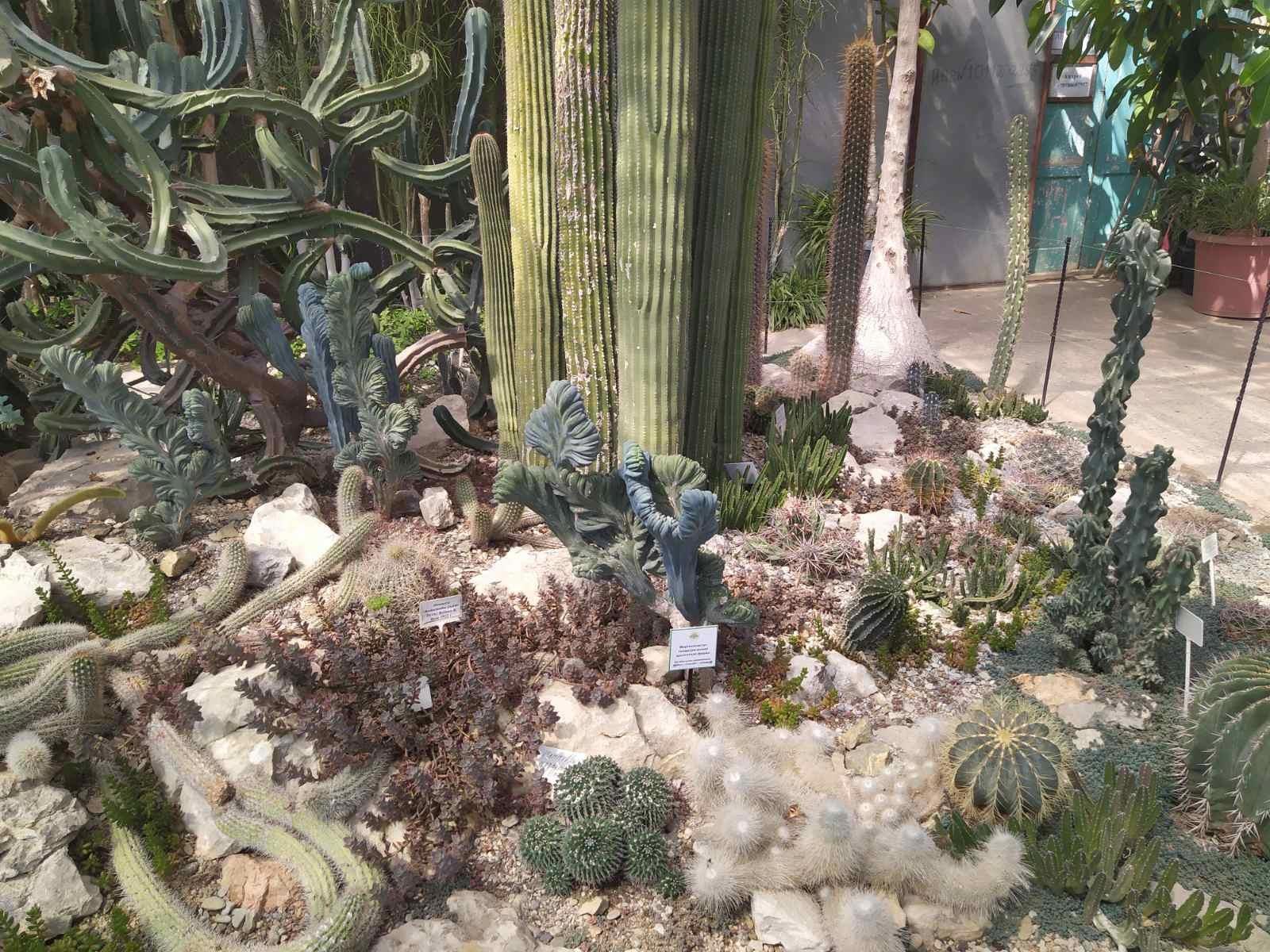 Кактусовая оранжерея. Общий вид, яркий житель, фрагменты.