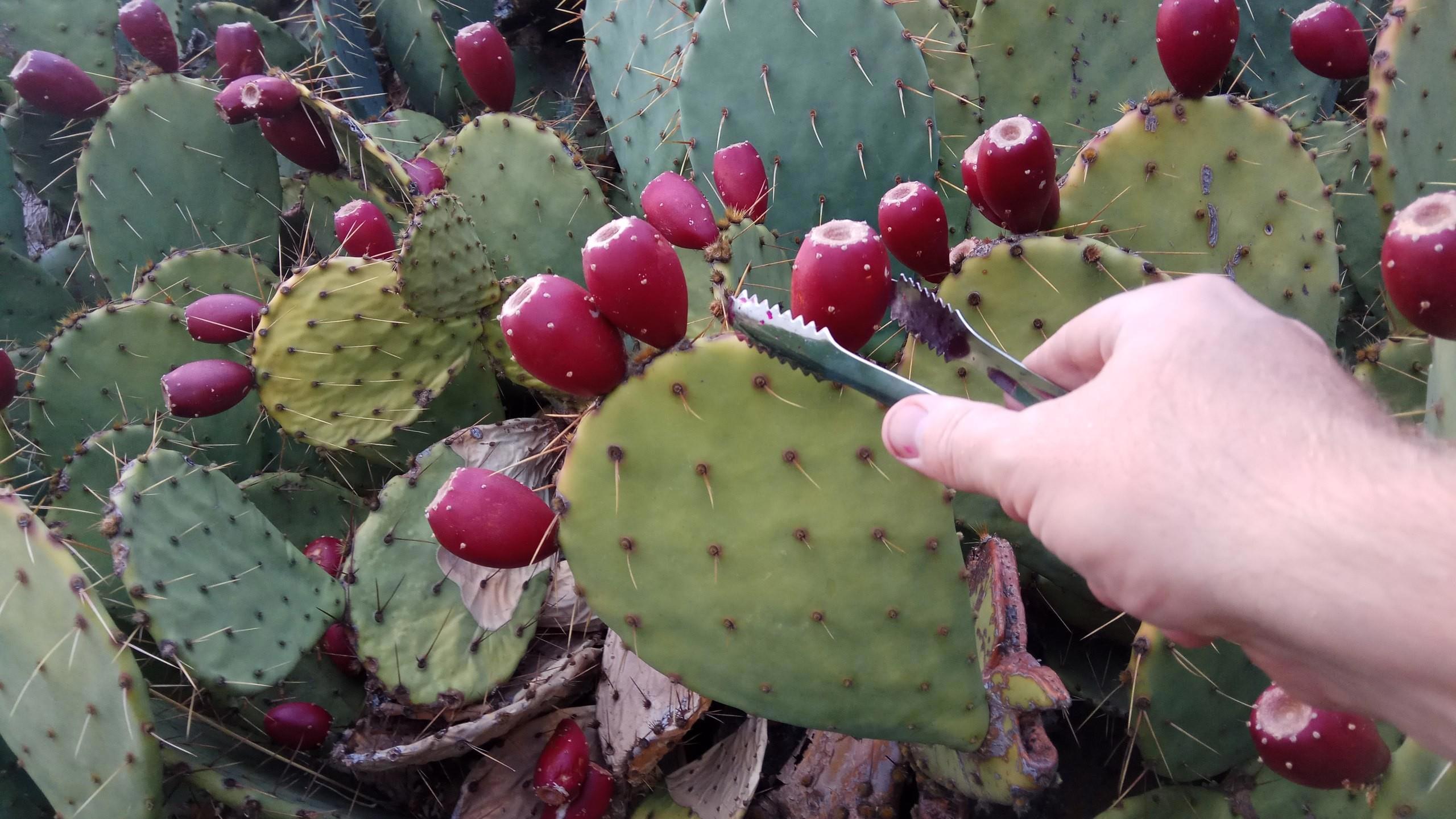 Итак, представим, что вы (или ваш герой) оказались в теплых краях: в Мексике, в Южной Америке, в Средиземноморье или где-то на берегу Черного моря. С большой вероятностью вам на глаза попадется один из видов опунции, если повезет - съедобной. В середине-конце августа она уже будет усыпана плодами: розовыми, желтыми, зелеными. Только не трогайте их руками! Кактус имеет очень тонкие, светлые колючки, которые при прикосновении мгновенно обламываются, их потом непросто найти и вынуть. Для сбора используют специальные щипцы (или любое другое приспособление, которое позволит вам не касаться кактуса голыми руками):