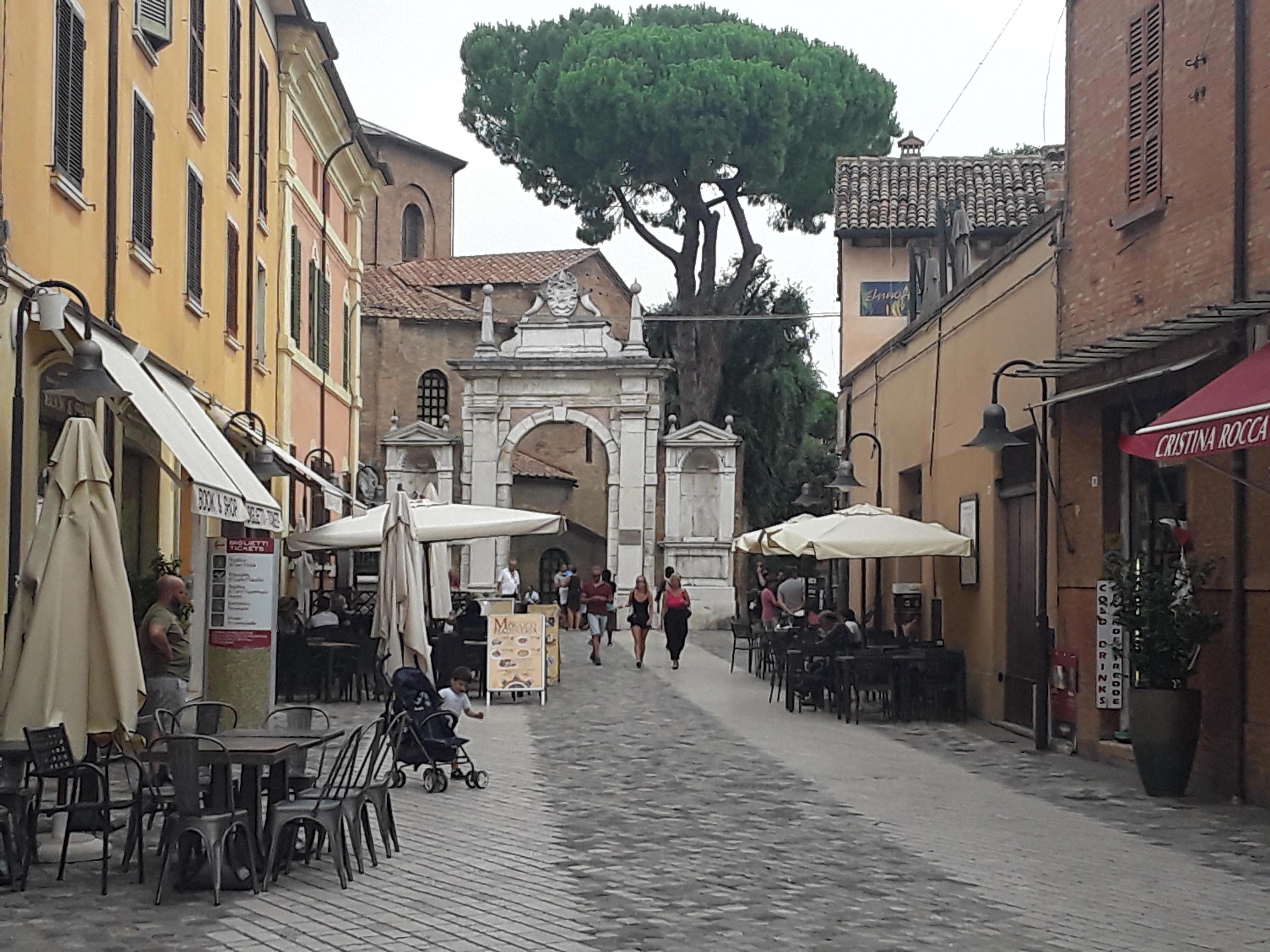 Остановившись на брусчатой мостовой, чтобы сделать очередной снимок, мы принуждены были обернуться на звук грохота: женщина в наряде официантки -сверху платье, снизу лосины – одну за другой опускала в металлический мусорный бак пустые бутылки из-под вина. Подошедший к ней мужчина с точно таким же подносом поступил немного иначе - более радикально: он опрокинул свой поднос одним махом, и на фоне грохота раздался еще и звон бьющегося стекла... Эта сцена служила иллюстрацией оборотной стороны пребывания в старинном городе, где у нас порой возникала мысль, что вместо бегания по достопримечательностям можно, не мудрствуя лукаво, зайти в какой-нибудь ресторанчик и "прибалдеть", пригубив бокал вина.