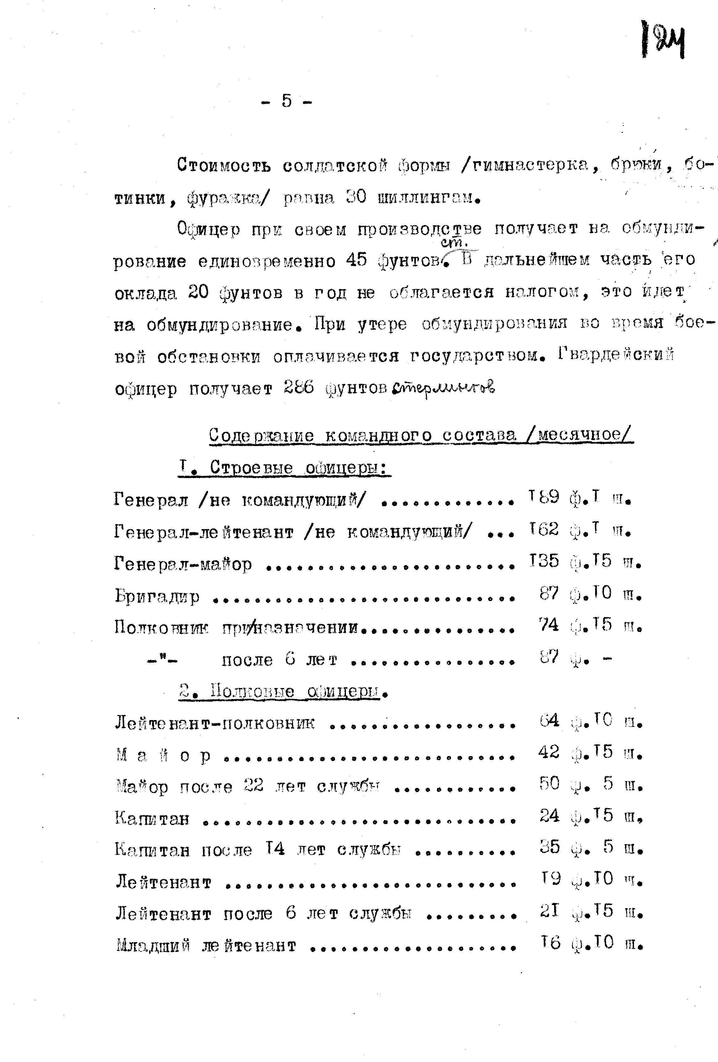 Можно ли теперь сопоставить уровень доходов британского и советского генерала? Вряд ли. Слишком уж много надбавок и дополнительных выплат полагалось британским военным.