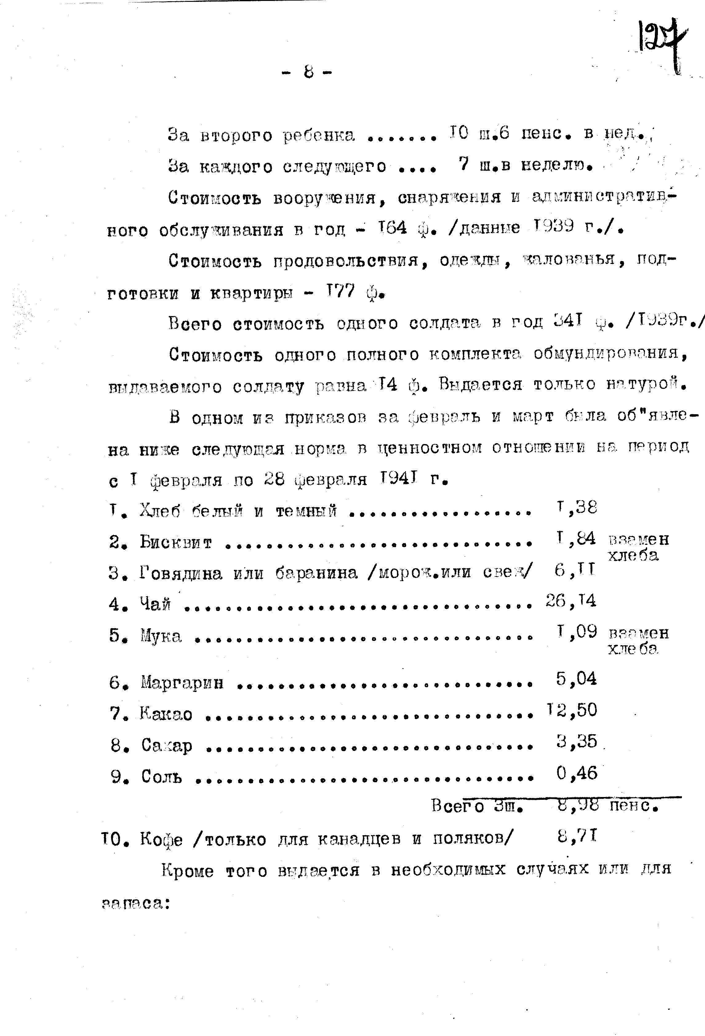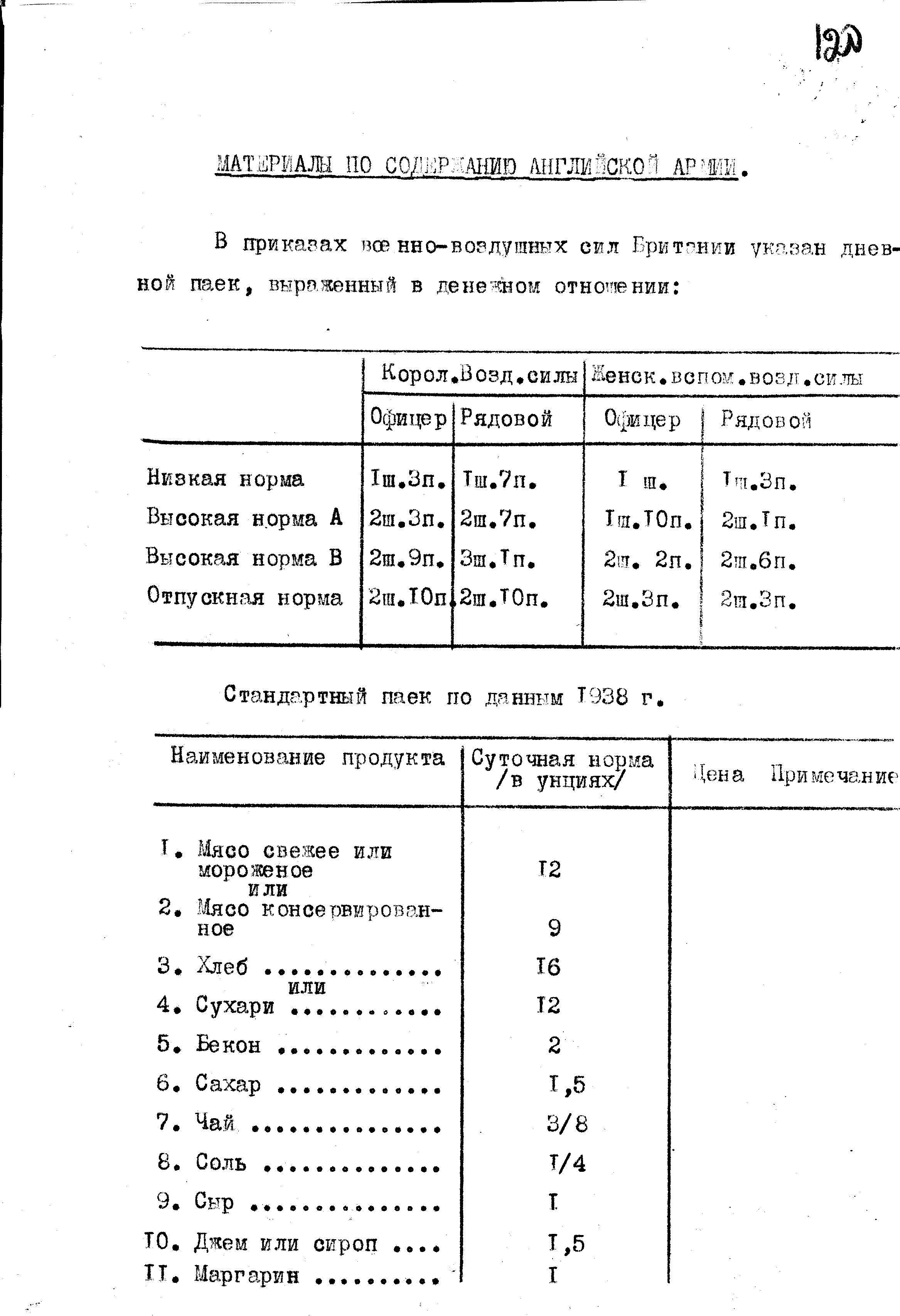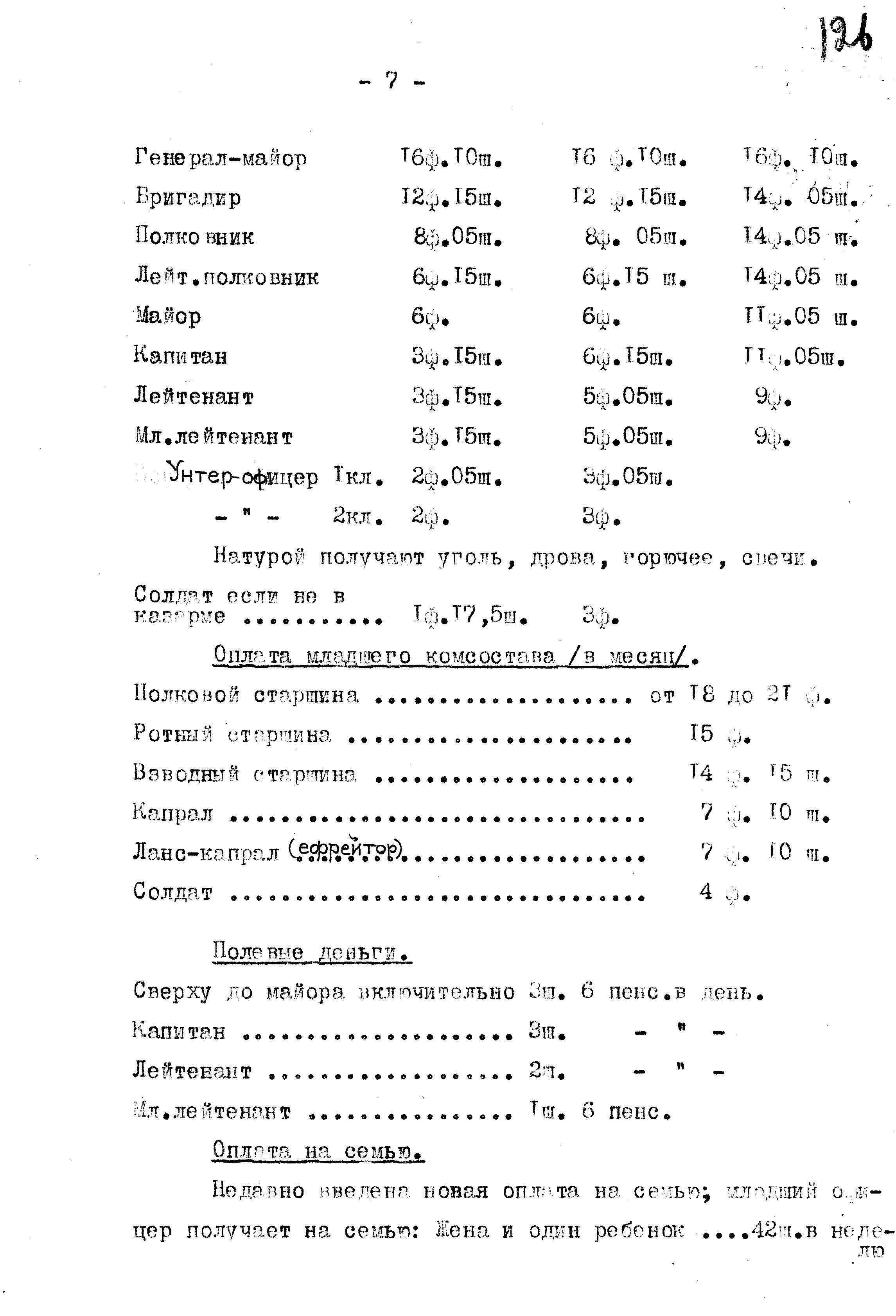 Первый, помимо привычных норм снабжения продовольствием и вещевым имуществом, содержит сведения о различных денежных выплатах полагавшимся военнослужащим Королевских Вооруженных Сил, начиная от рядового, заканчивая генералом.