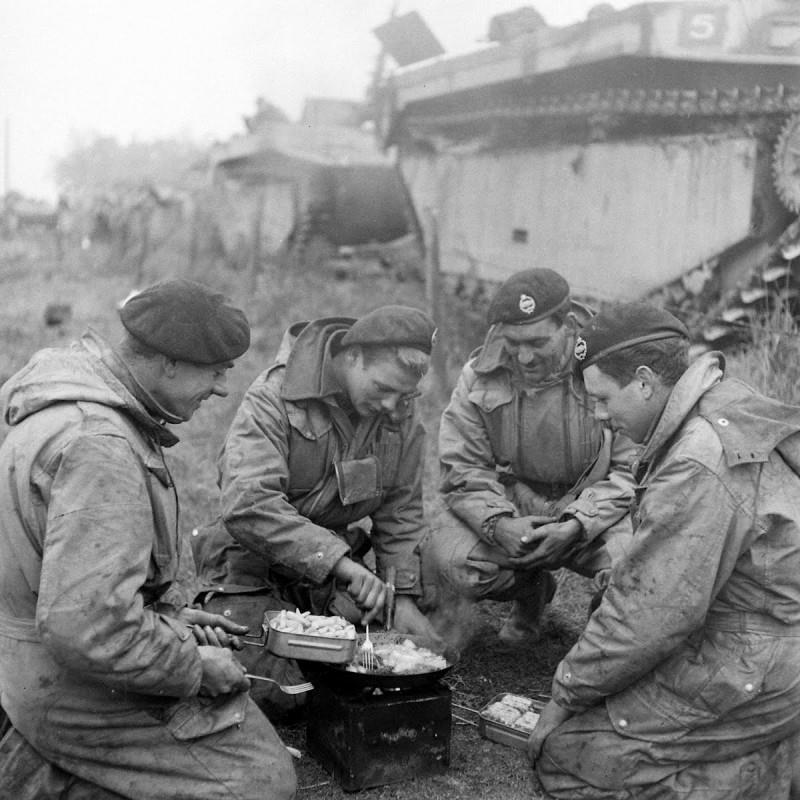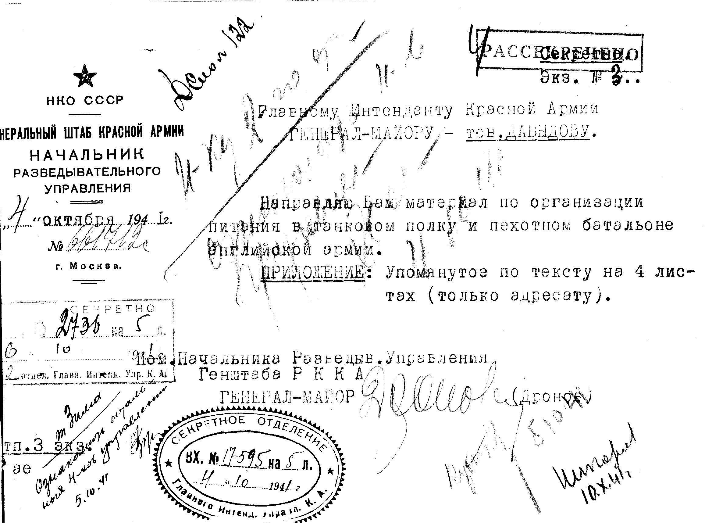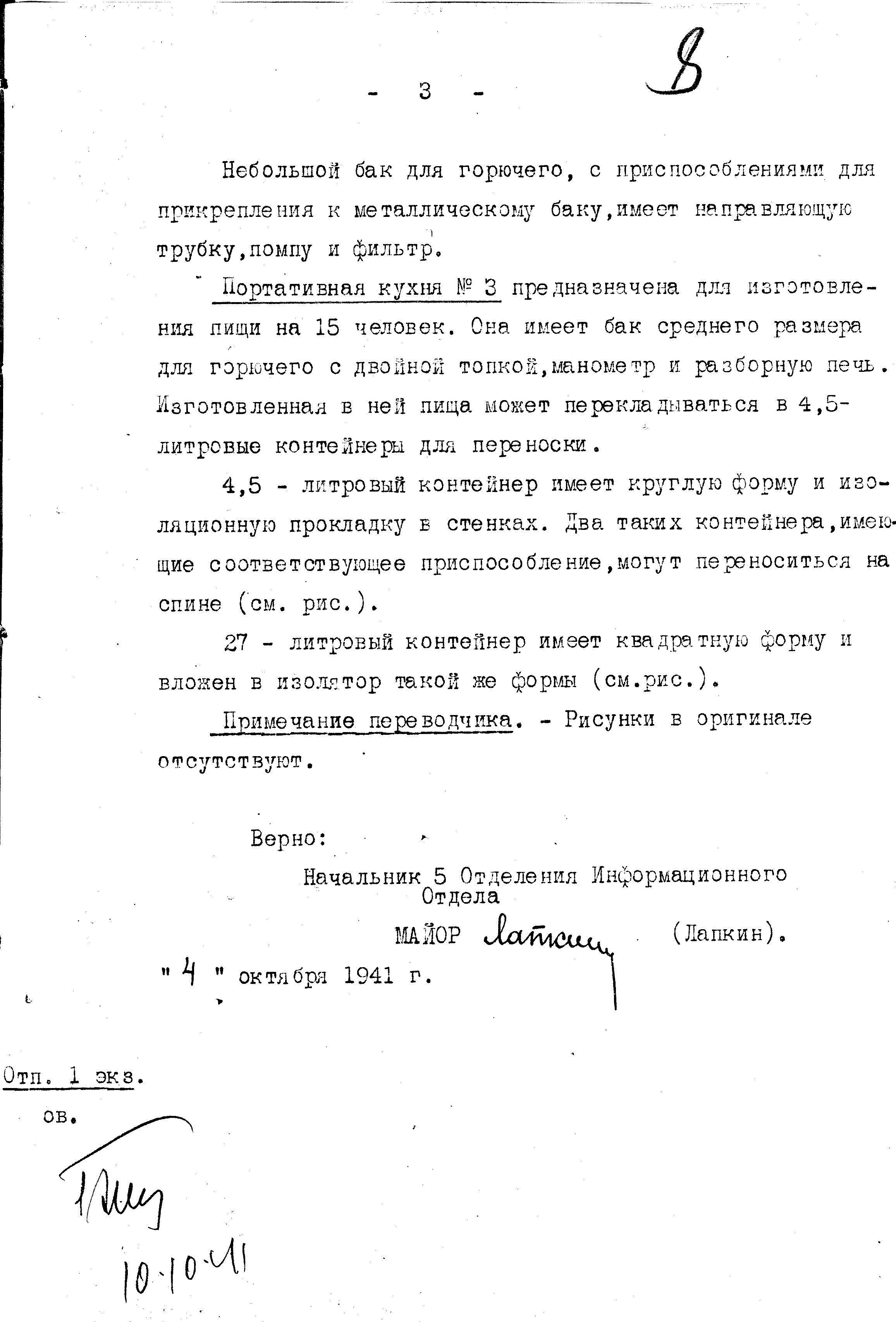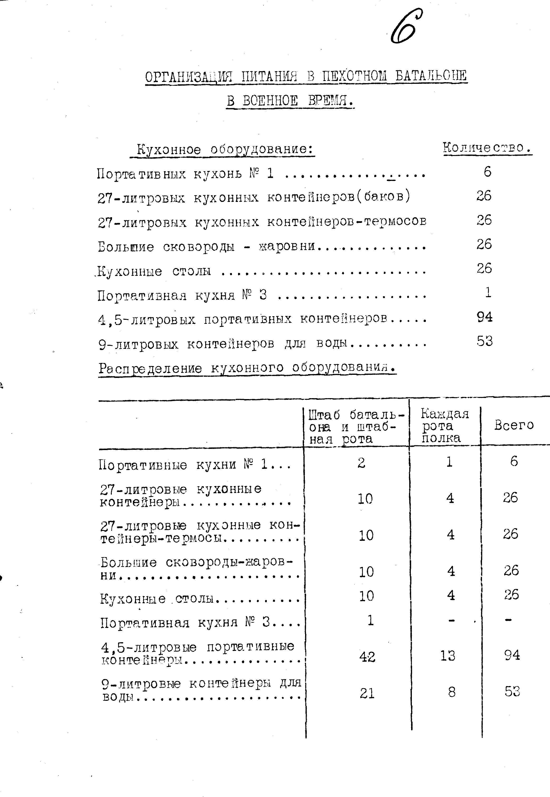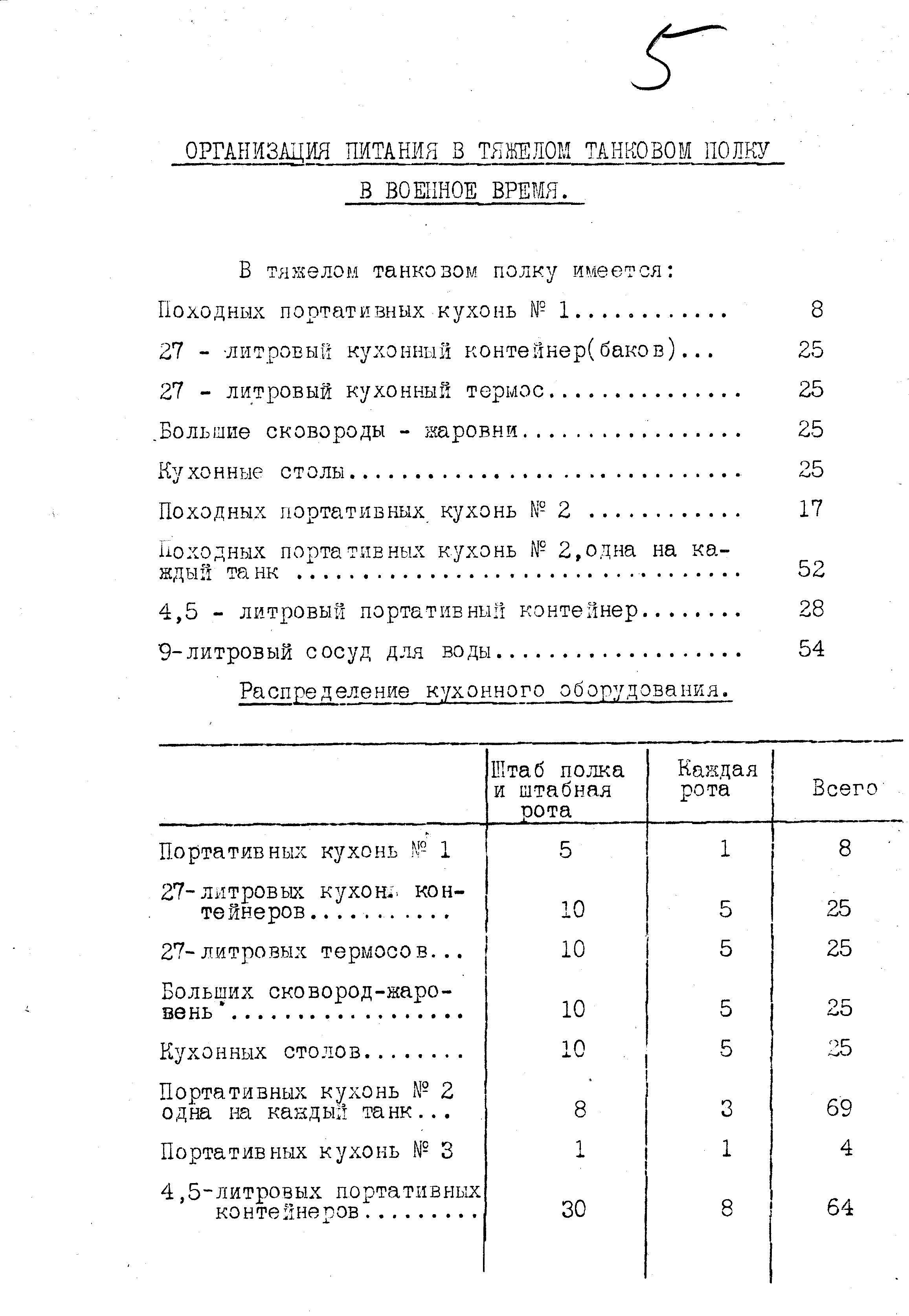 Название второго документа - многообещающее: "Материал по организации питания в танковом полку и пехотном батальоне". Увы, но на четырёх страницах документа можно отыскать только сведения о количестве и краткое описание полевых кухонь и кухонного оборудования в каждой из воинских частей. К сожалению, мне не удалось найти фотографии техники продовольственной службы армии Великобритании. Если у Вас, уважаемые читатели, есть подобные фото, то с удовольствием дополню ими текст.