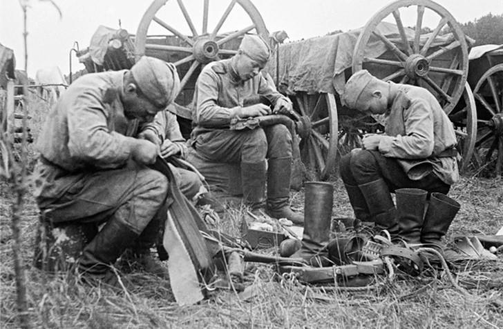 Военнослужащие Красной Армии в брезентовых сапогах