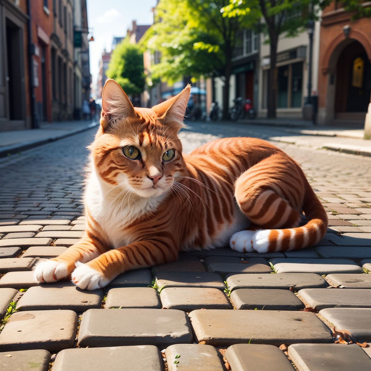 Ну, ладно, не с первого раза. Мальчик в процессе изменения сам испугался. Спасибо, SD, что хоть бутылку "балтики девятки" ему в руку не присунула. Лишних котов пока не считаем. Ура, с десятого раза сел. Но нейронка упорно не хочет рисовать рядом лежащего кота. Ок, генерим ленивого кота отдельно: