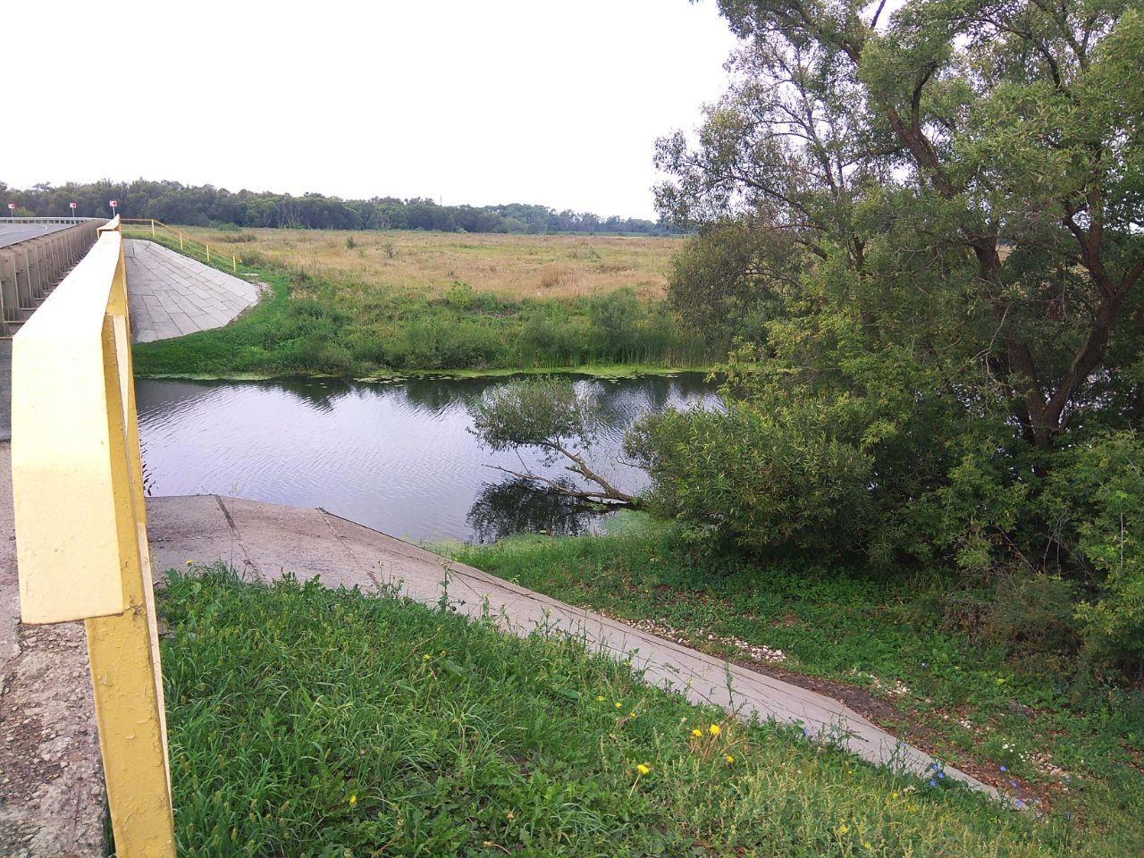 Ну что ж, мак поехал в Новосиб, а я потопала обратно. Заодно спустилась к речке, мимо которой мне предстояло пройти. Она разделяет село на две большие части, а соединяет два берега огромный эстакадный мост в несколько километров, поскольку река в этом месте раздваивается и принимает форму змеи в движении, делая петли, изгибы и повороты.