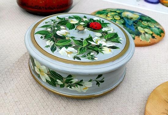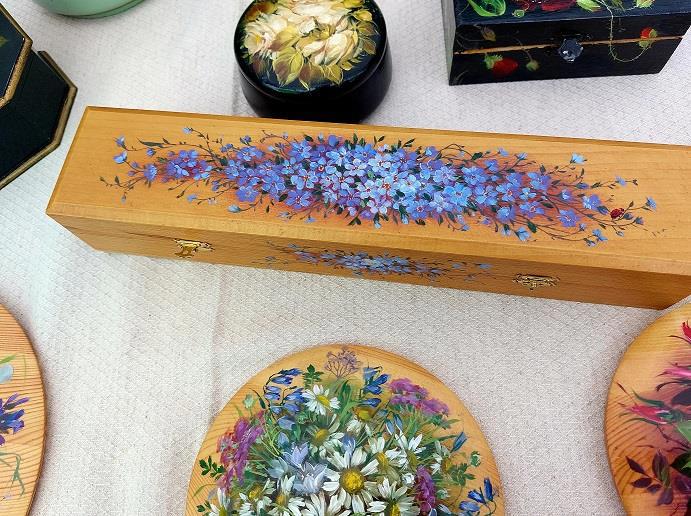 Но главное, что все эти расписные шкатулки-разносы будто живые и хранят тепло рук добрых мастеров, которые работали с деревом, давая ему вторую прекрасную жизнь...