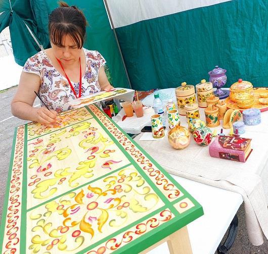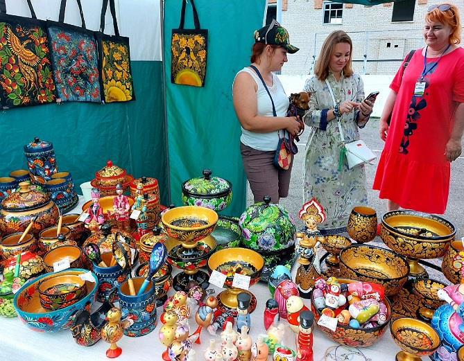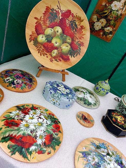 Наши столичные гости не переставали удивляться, говоря что у нас все эти великолепные вещи стоят очень дёшево и на Арбате к этим ценникам явно приписали бы слева ещё по одной цифре... многие гости фестиваля купили на память прекрасные сувениры: разносы, шкатулки и др.