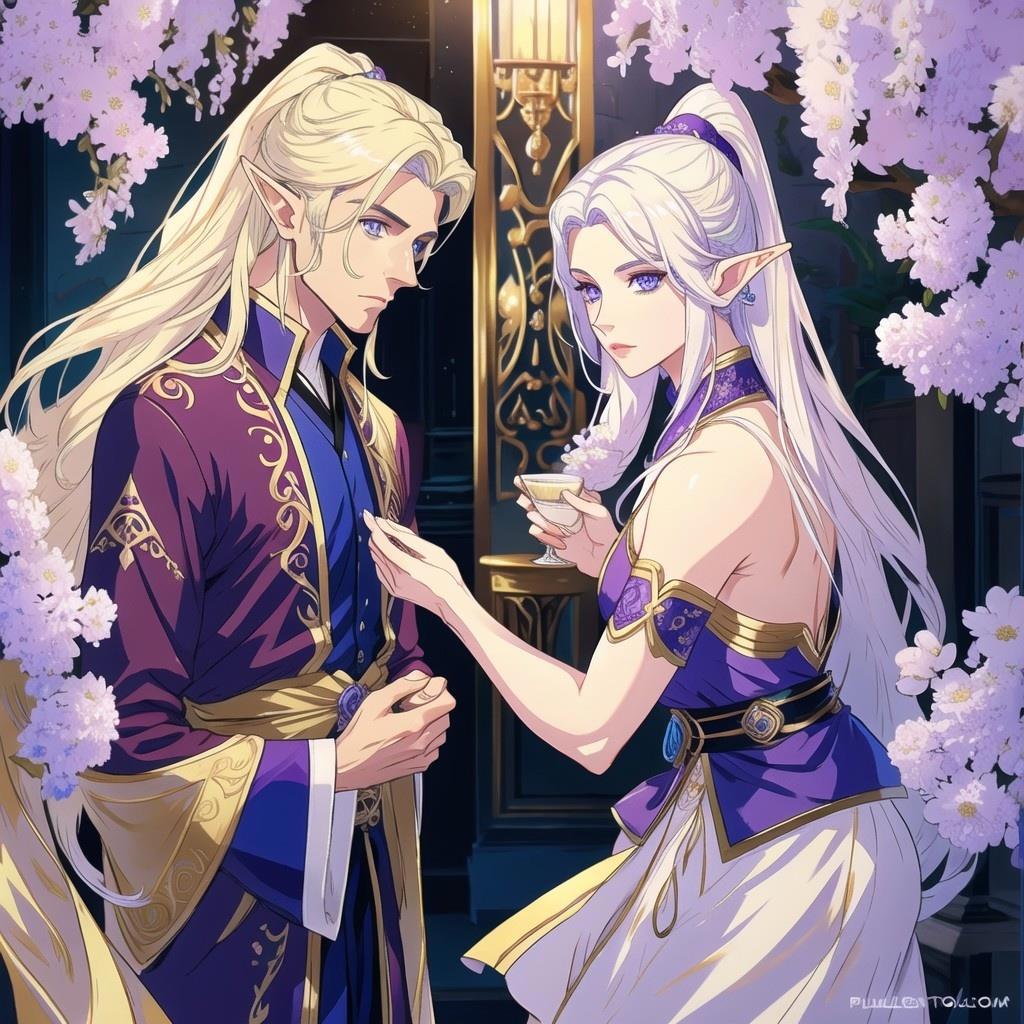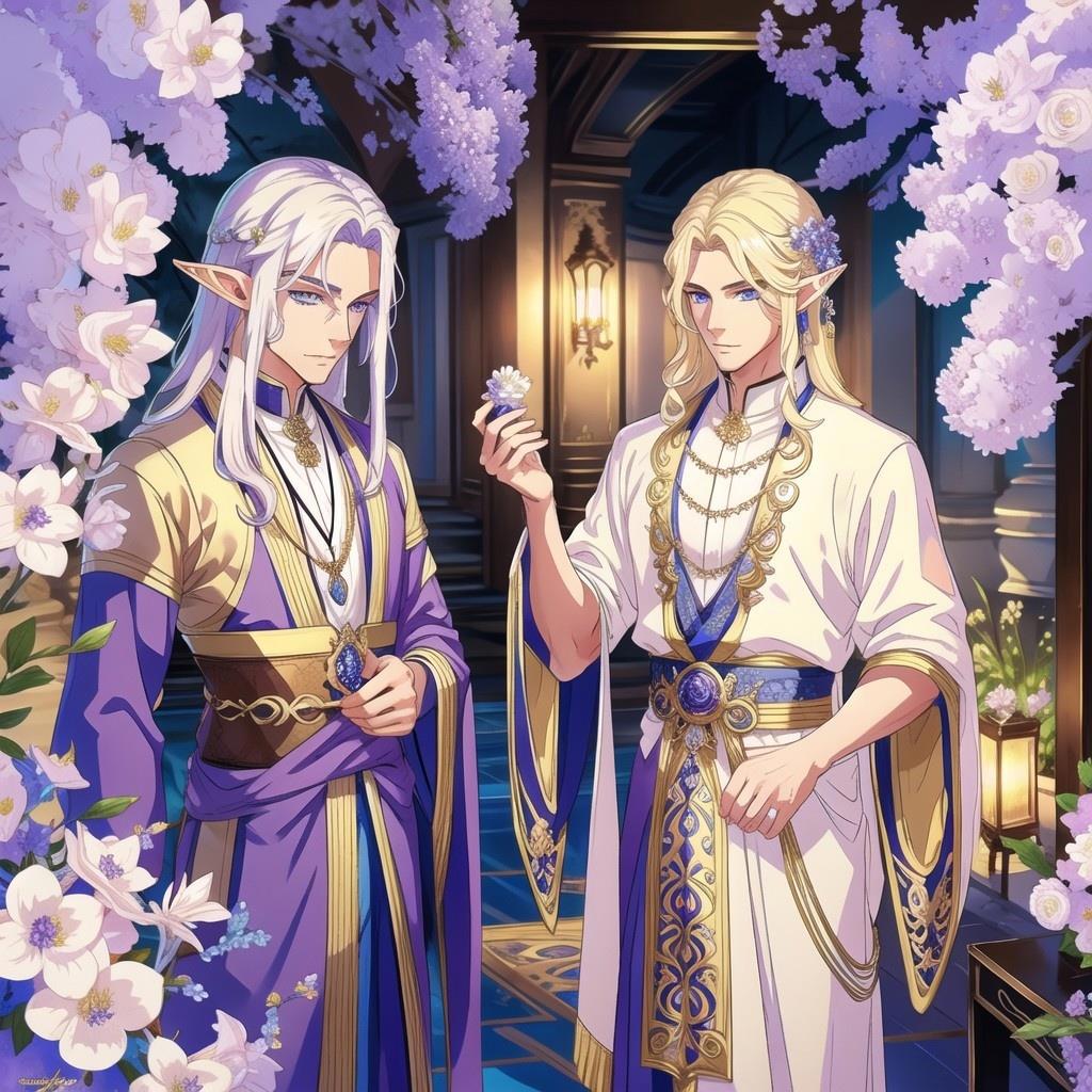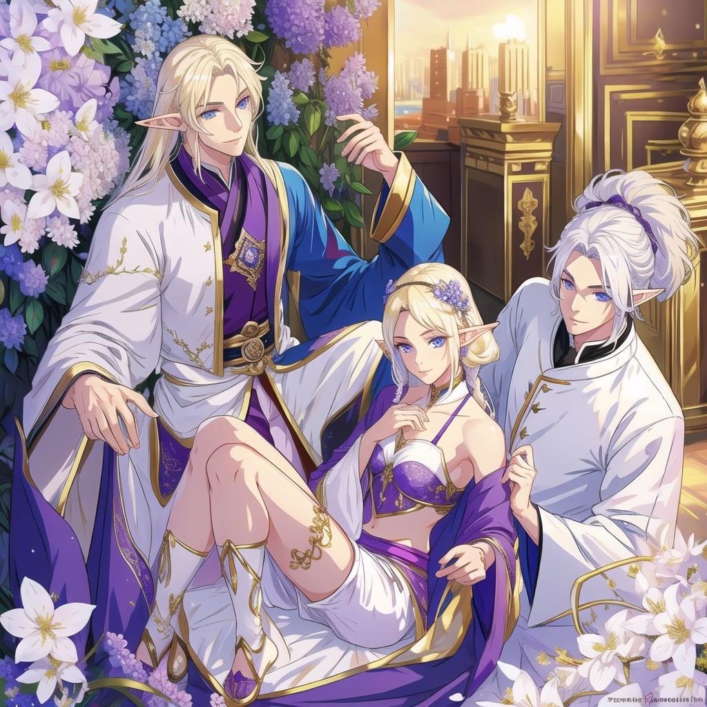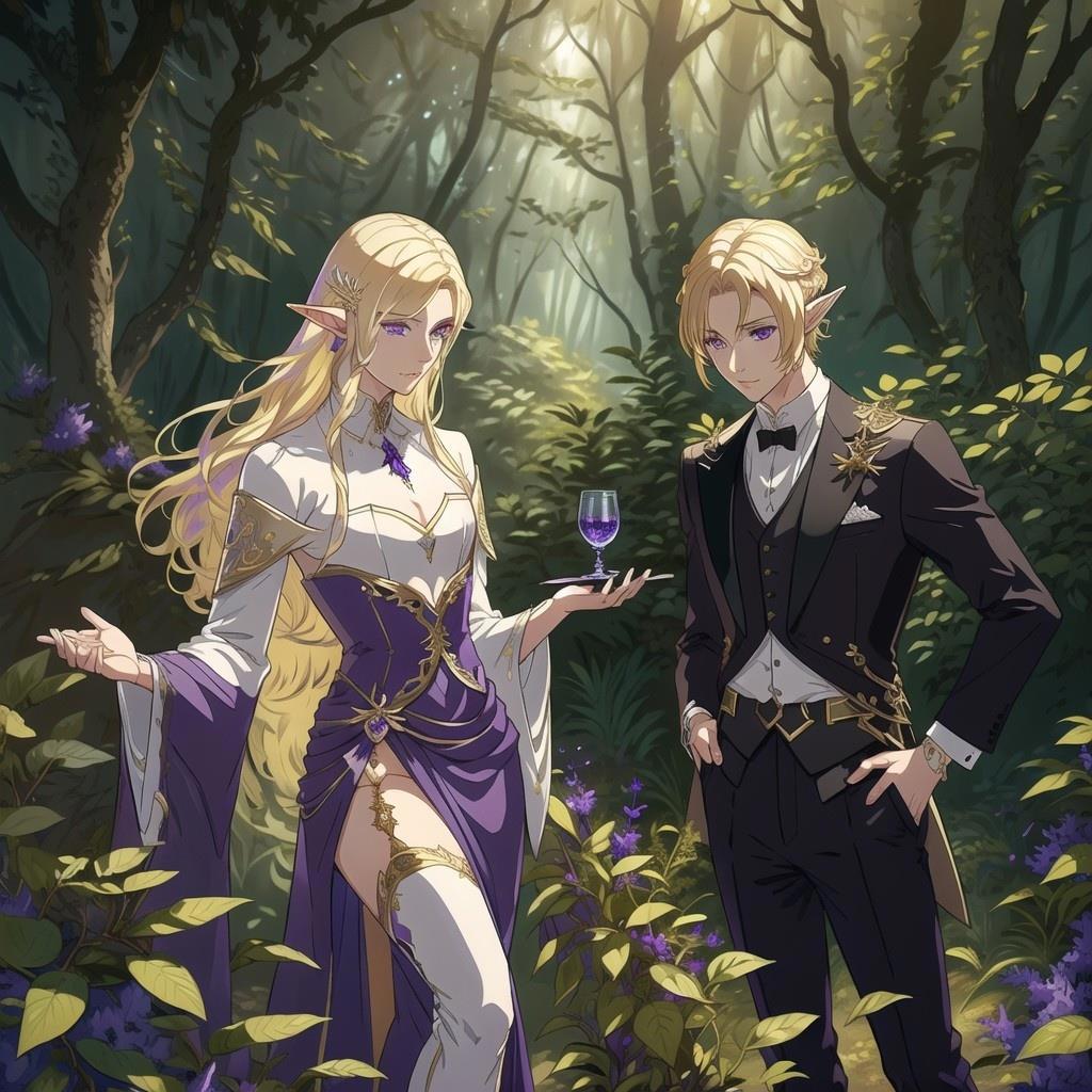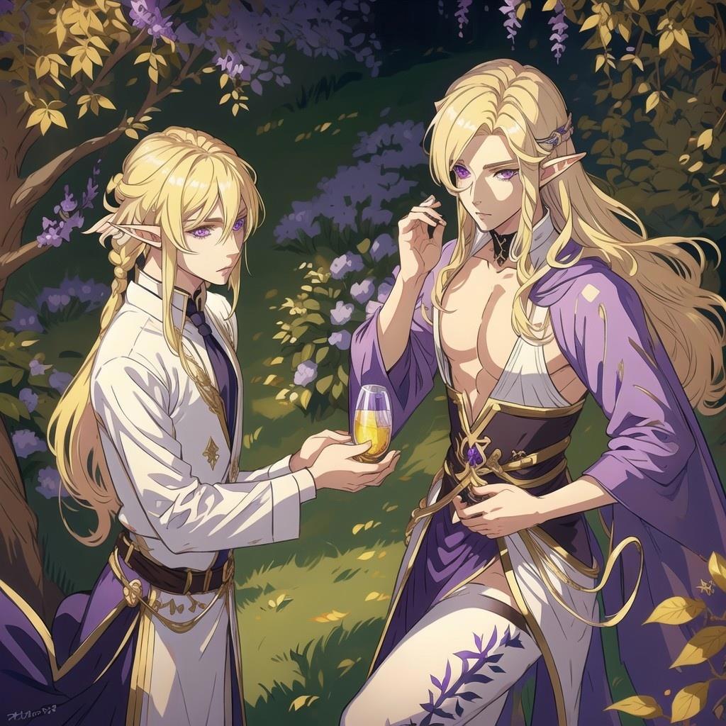 Картинки с эльфами для книги "Аметистовый эльф" и там в запросе был эльф-мужчина с фиолетовыми глазами. Но нейросеть упорно рисовала везде эльфиек, даже после того, как я внесла слова girl и female в негативные промпты(