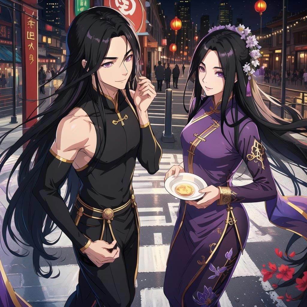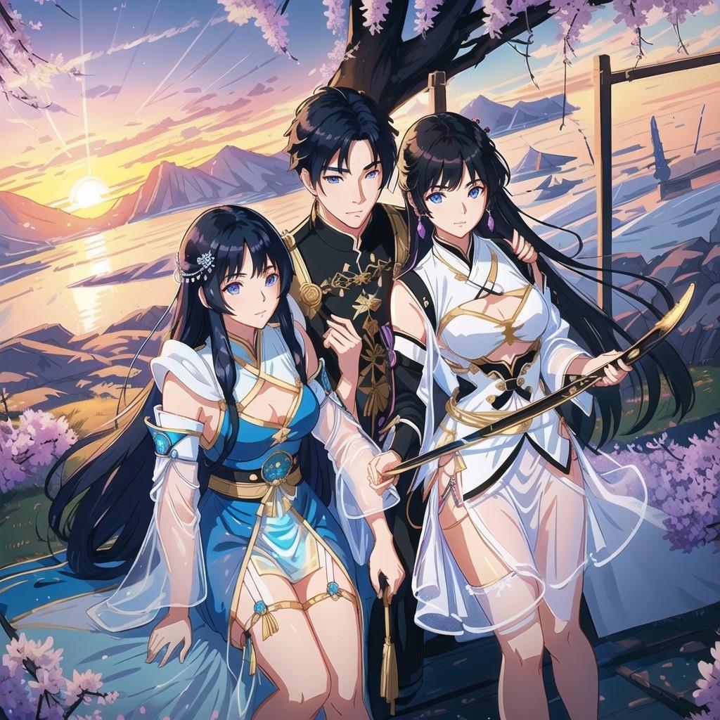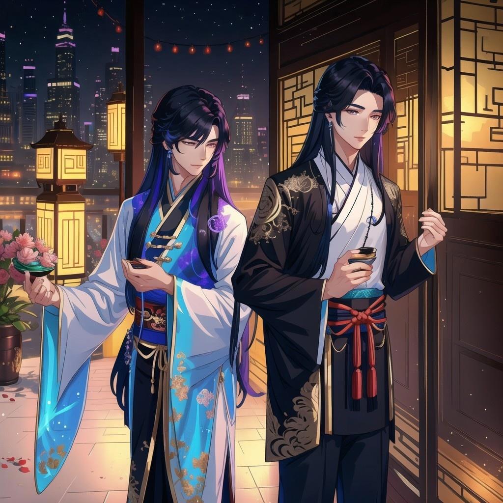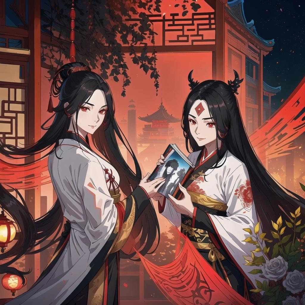 А вот на этом запросе должен был быть темный повелитель в красном ханьфу на фоне своей цитадели, но почему-то получились девушки, которые делятся друг с другом яойной мангой