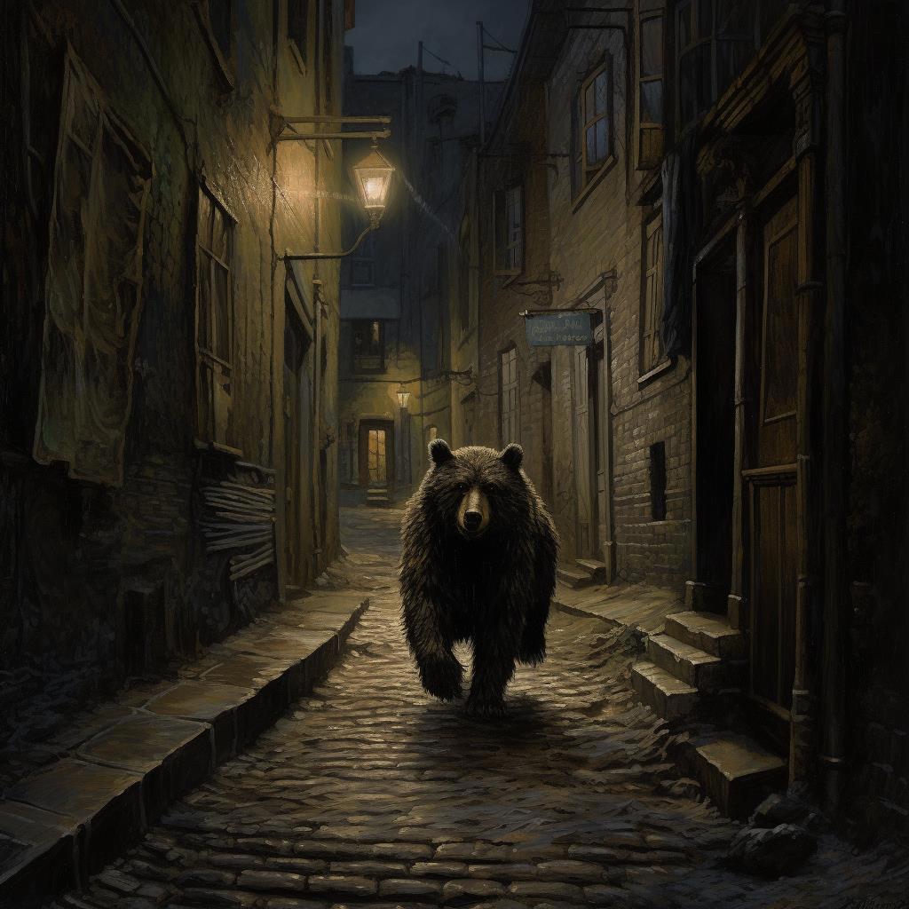 Будем собирать по частям. Сделай мне медведя, бегущего по трущобам.