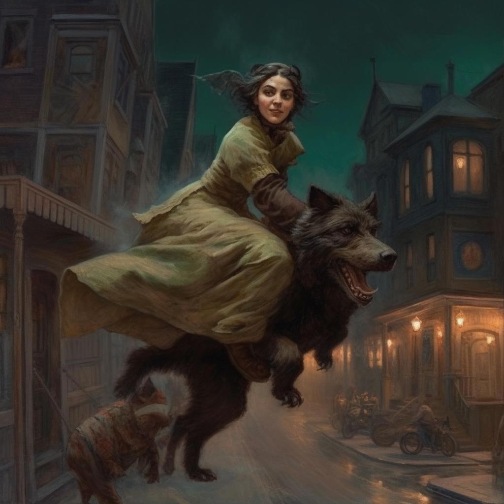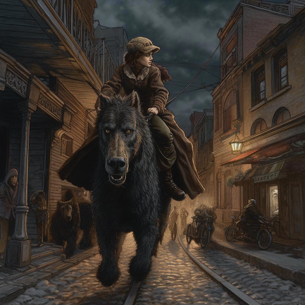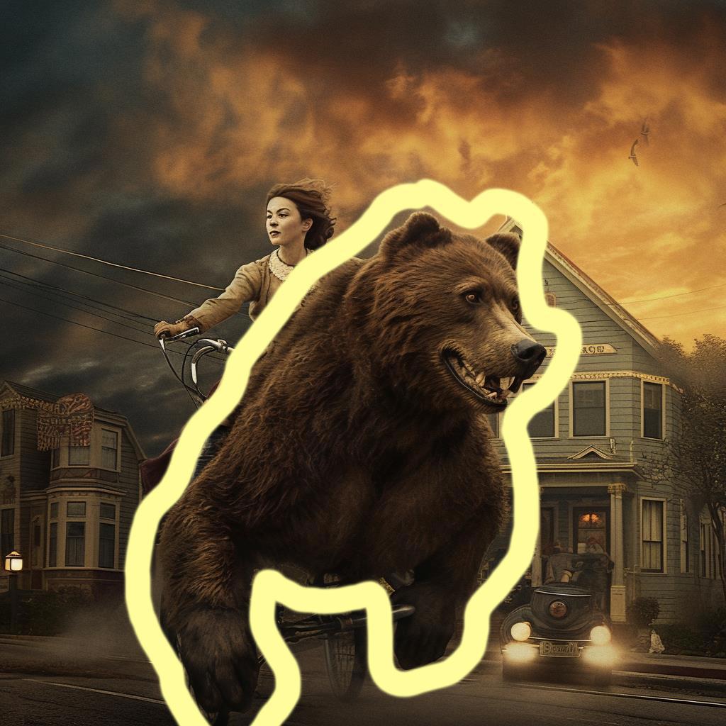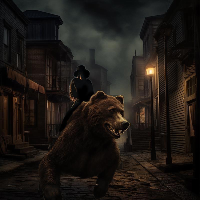 Задача: женщина в одежде девятнадцатого века скачет верхом на медведе по городским трущобам.