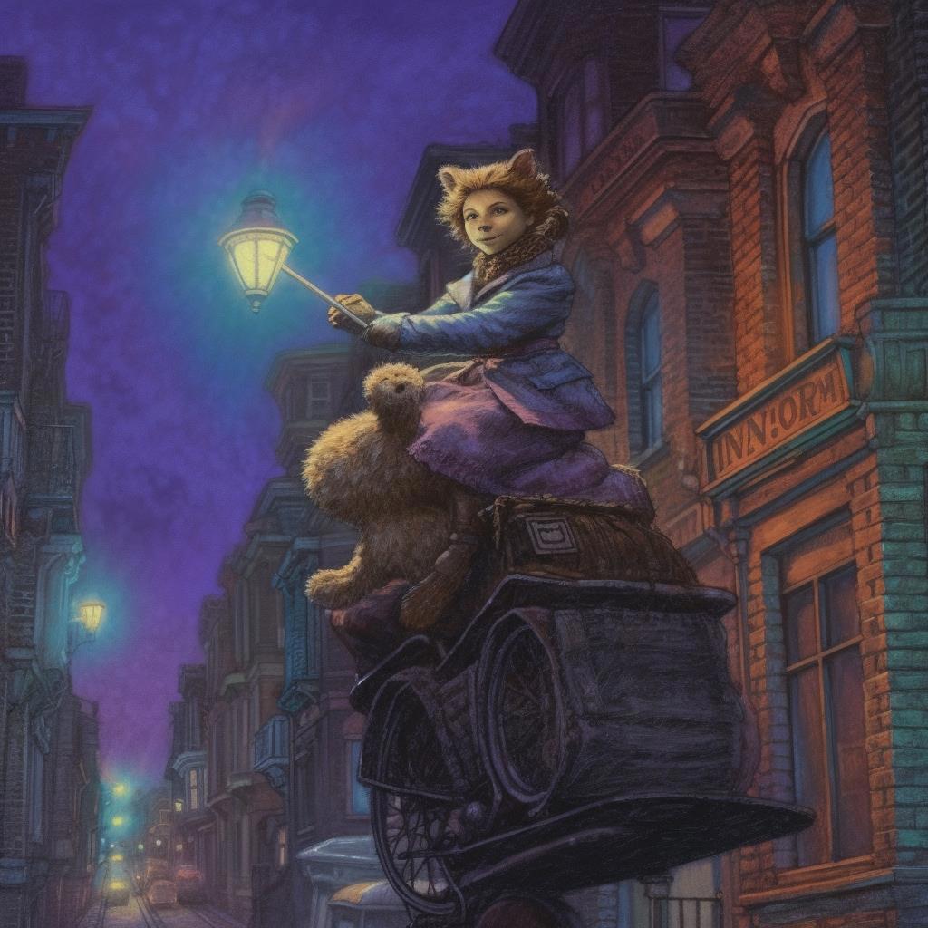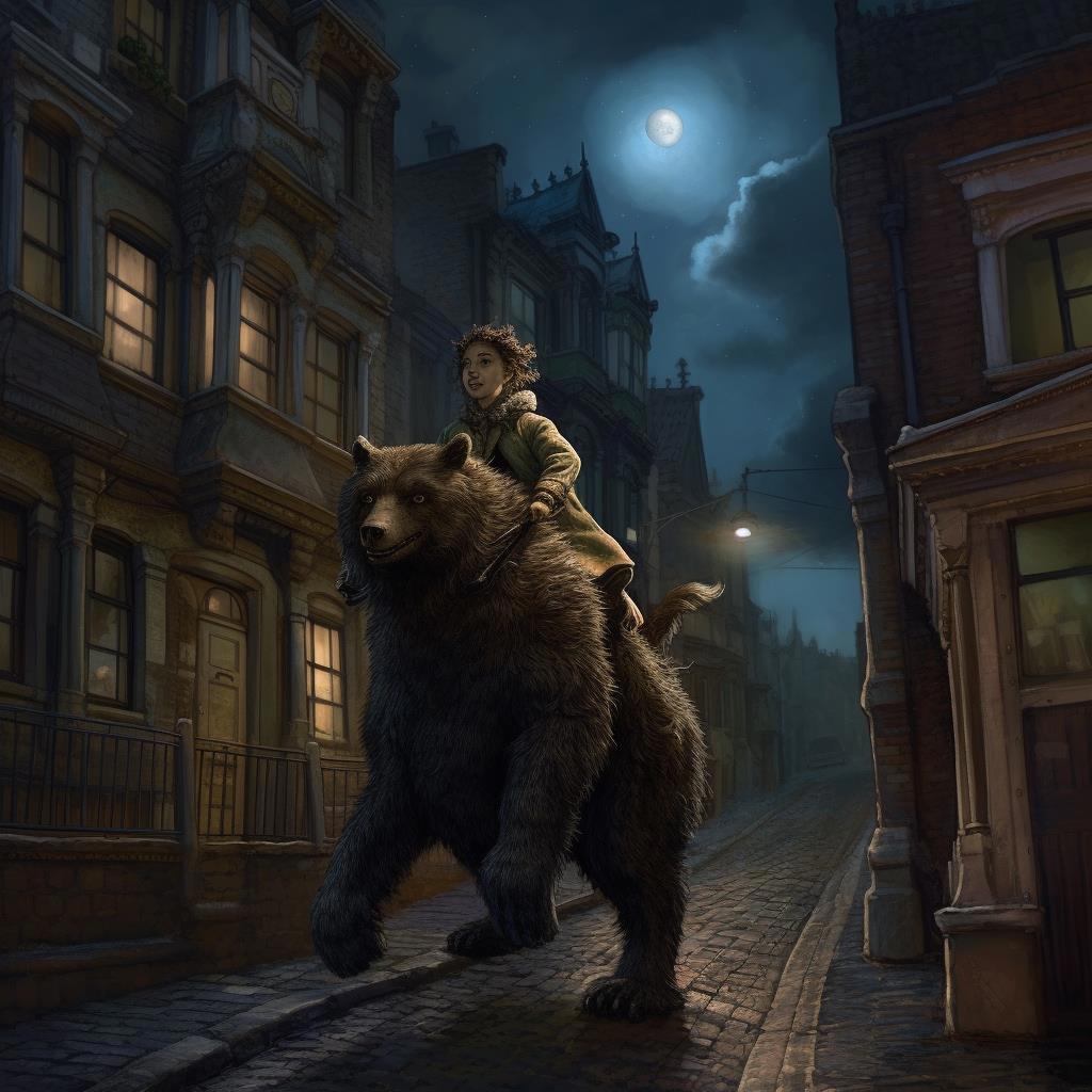 Автор: Элина ЛитераКогда в "Стрекозе" появился медведь-оборотень, я поняла, что не прощу себе, если не будет скачки верхом на медведе по городским улицам. Скачка состоялась в бедных районах. Упустить такой момент из иллюстраций я тем более не могла.