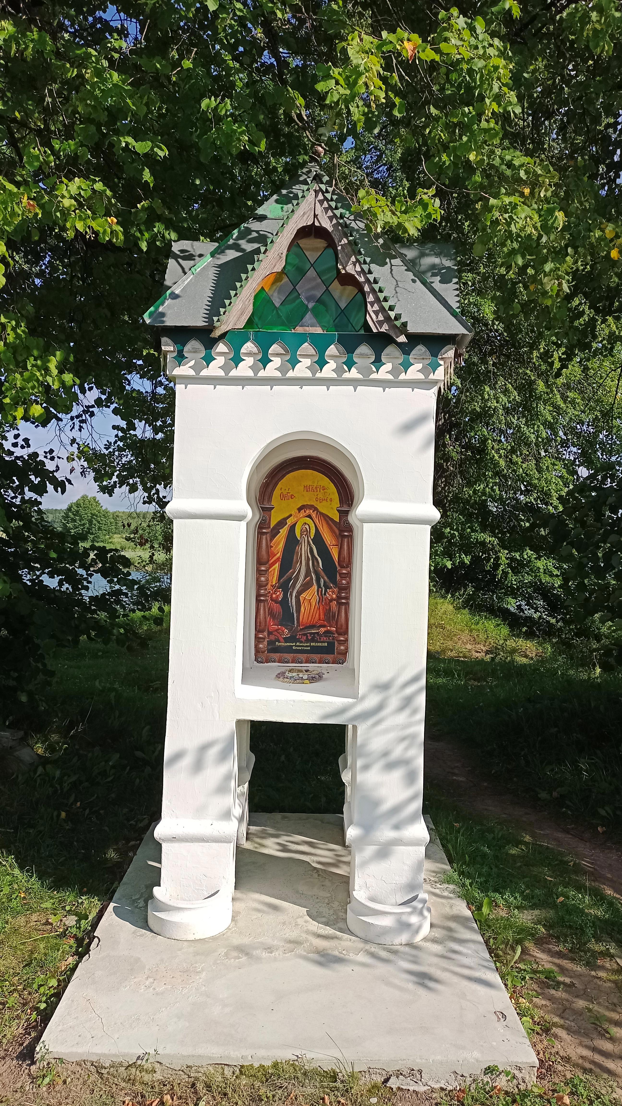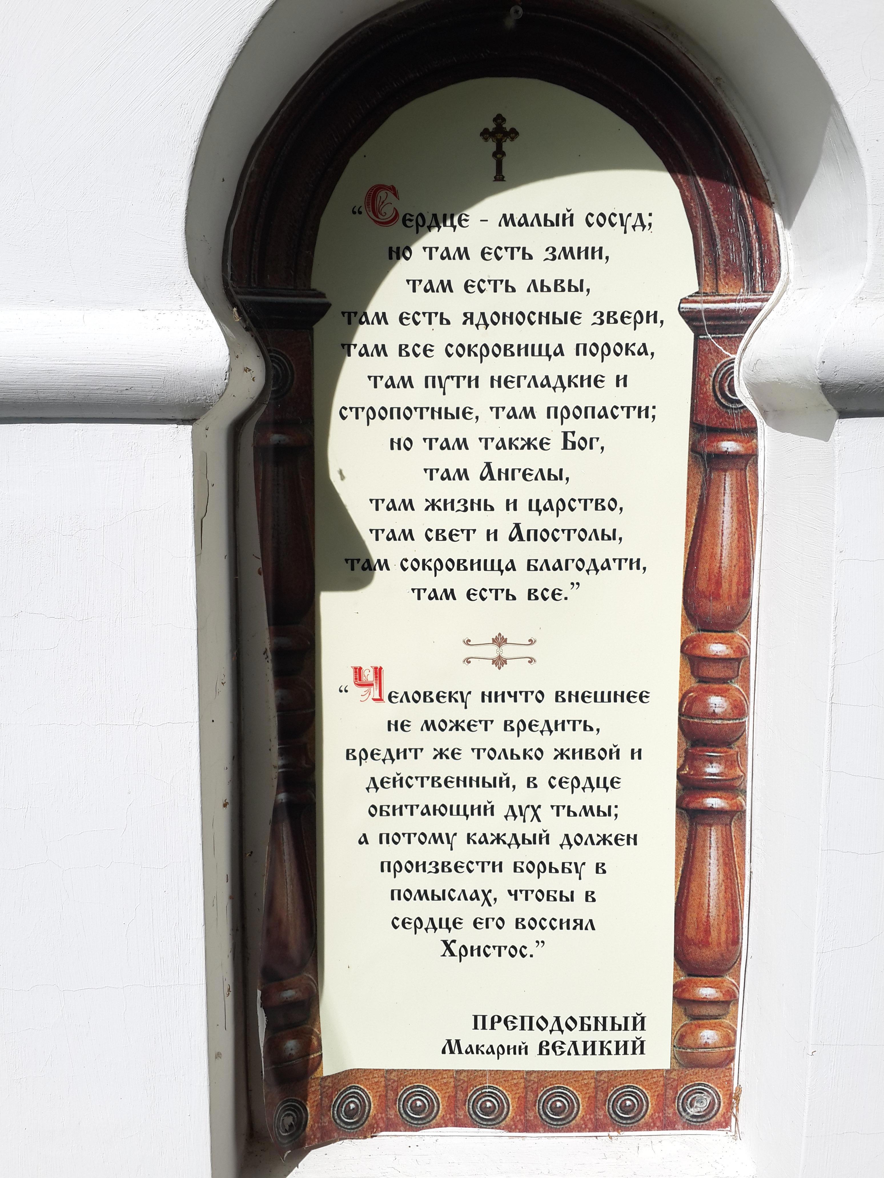 В часовенке обычно не только икона святого, но и какая-то цитата из его писаний