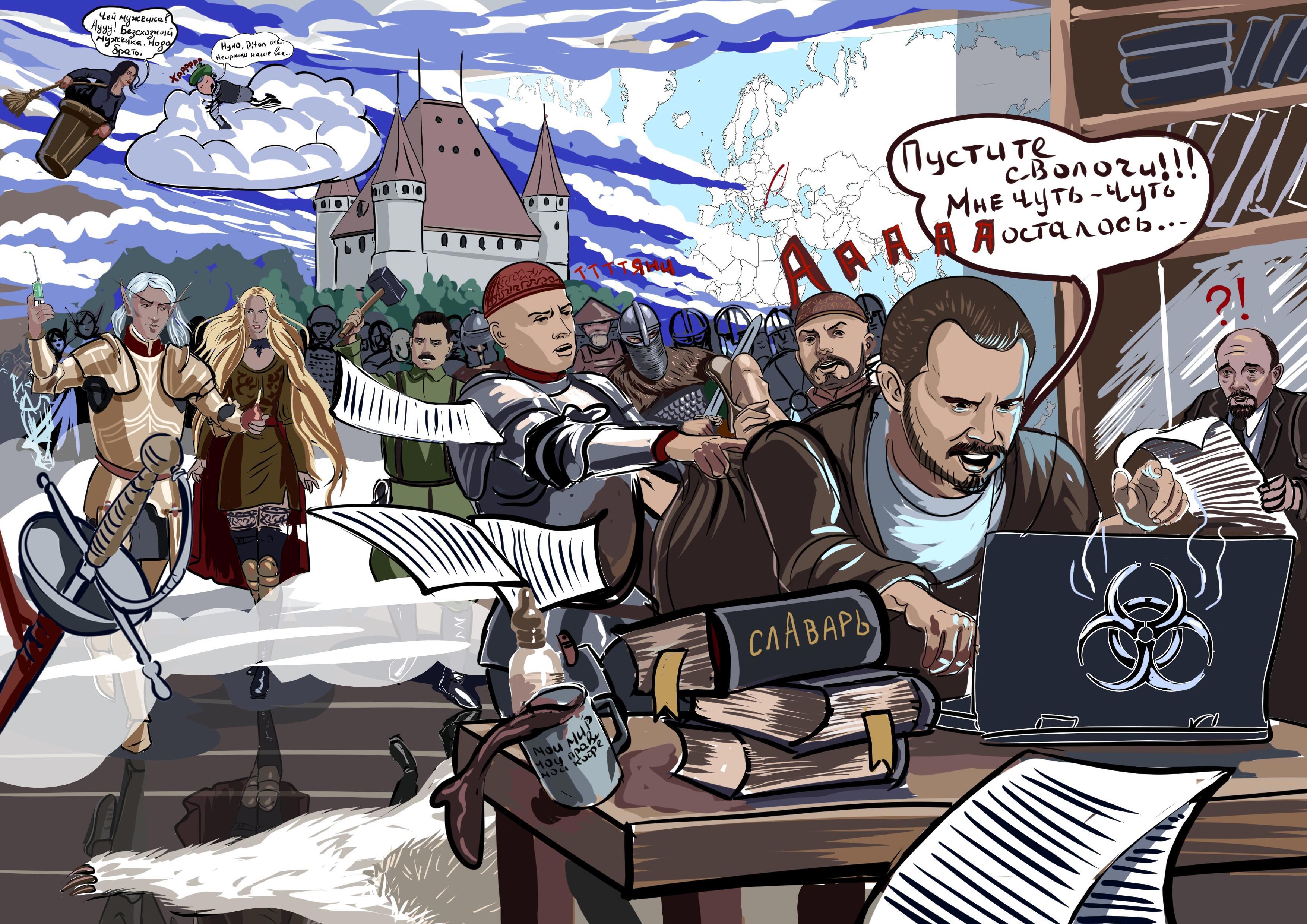 Художник Сергей Нинику постарался изобразить развитие событий, когда эти герои заявляются ко мне домой без приглашения, толпой...