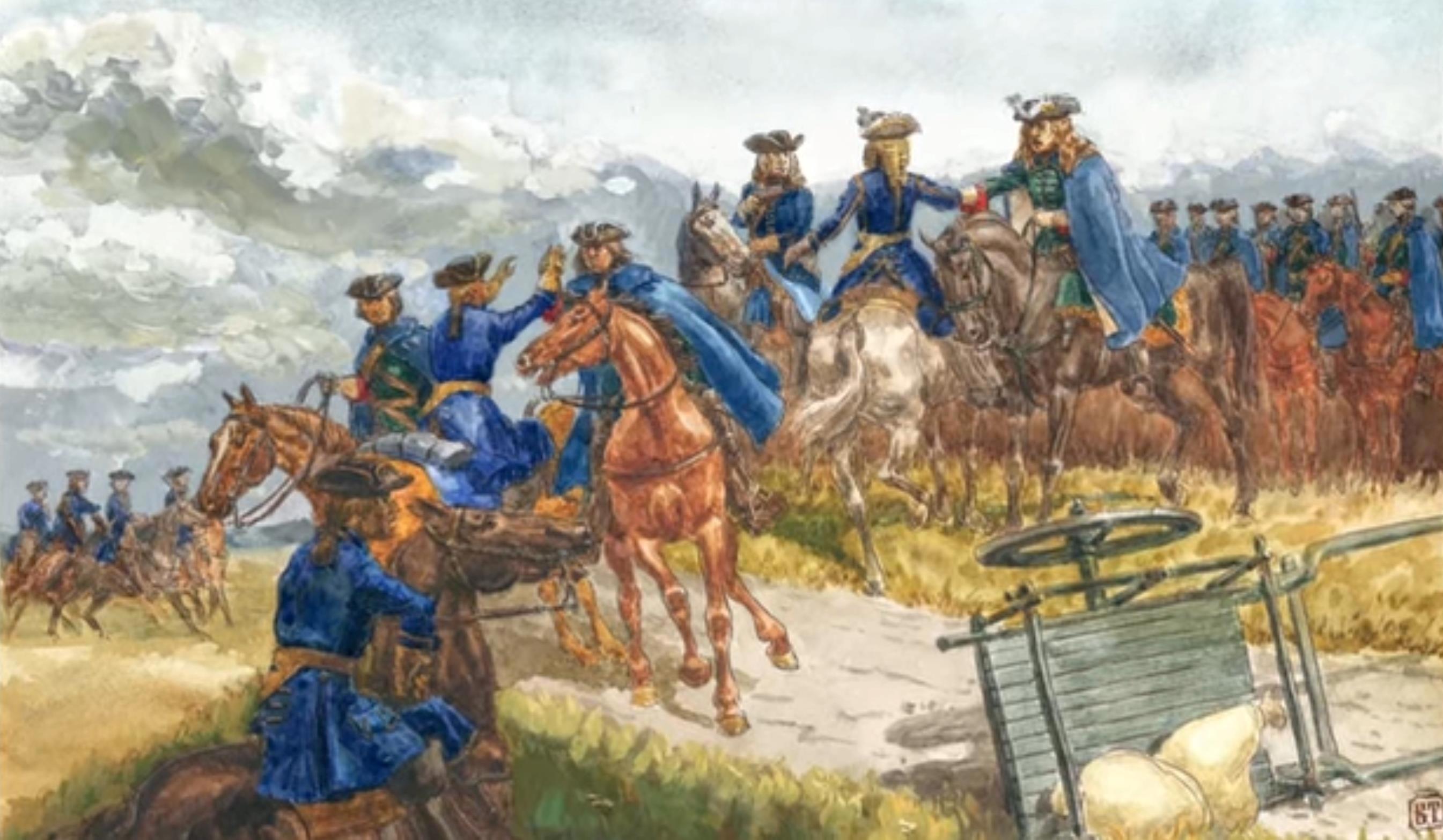 Автор: Елена ГореликДело было под Нарвой в 1704 году. Русское командование решило инсценировать атаку шведов. Задействовали драгун, семёновцев и другие полки в синей и серой униформе. В итоге затрофеили подполковника Маркварта и ещё 40 шведов :)