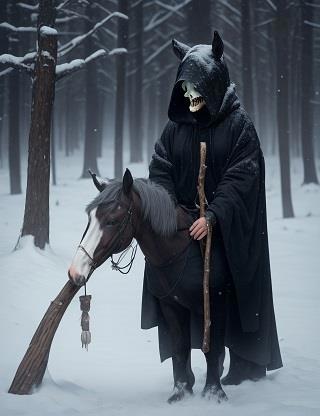 Если что, я пытался убедить сеть нарисовать лошадиный череп НА голове или ВМЕСТО головы.