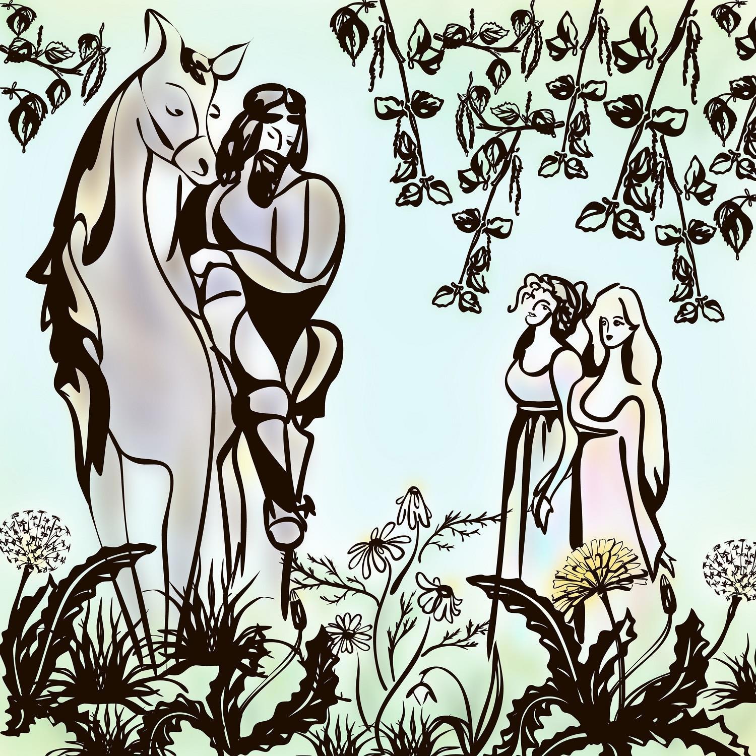 Это конкурсная иллюстрация от Kajasja. У этой художницы такая красивая певучая линия, ей и минимумом цвета она создаёт такую тёплую, сказочную атмосферу.