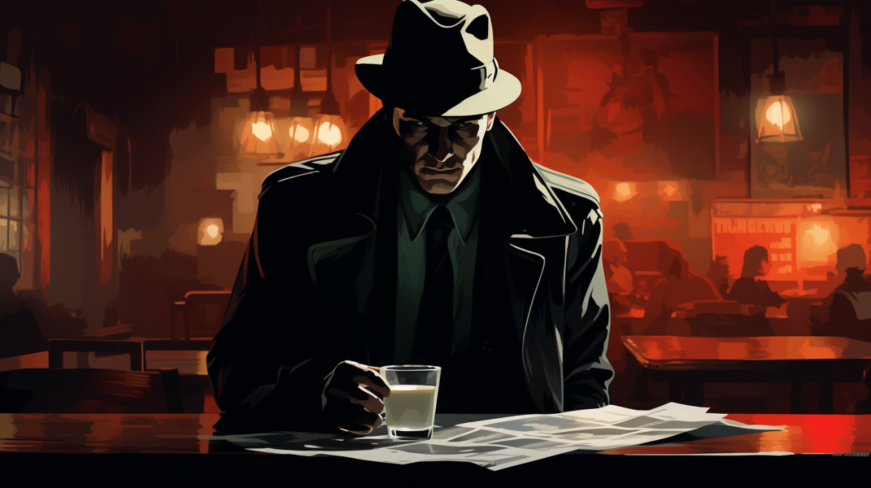 Ну и наконец, почему же детектив непьющий. Это, разумеется, такая шутка, потому что нейросеточки очень любят нашему нуарному детективу вместо выпивки подсовывать очевидный безалкоголь: