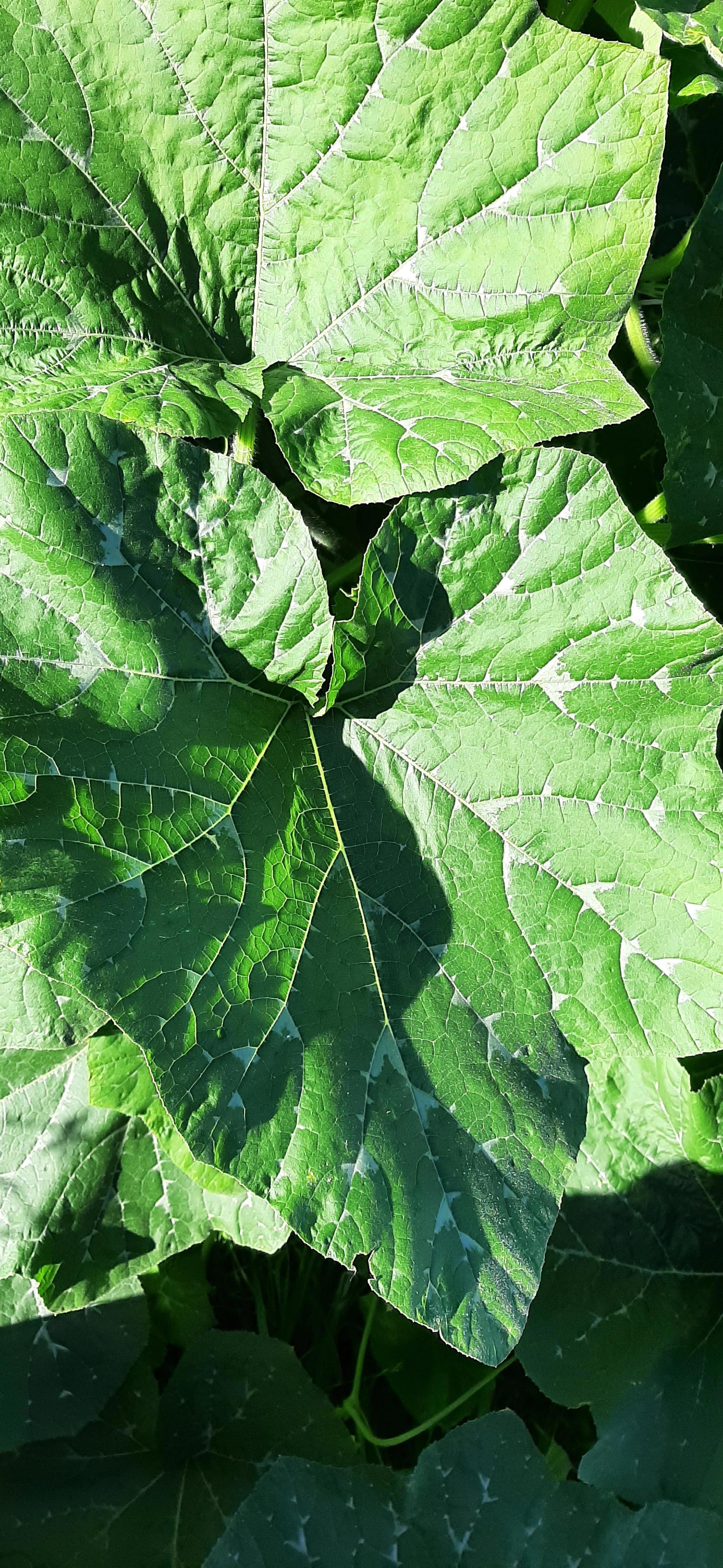 Я не удержалась и сфотографиравала листья тыквы. К ней довольно сложно подбираться. Лозой всю округу затянуло
