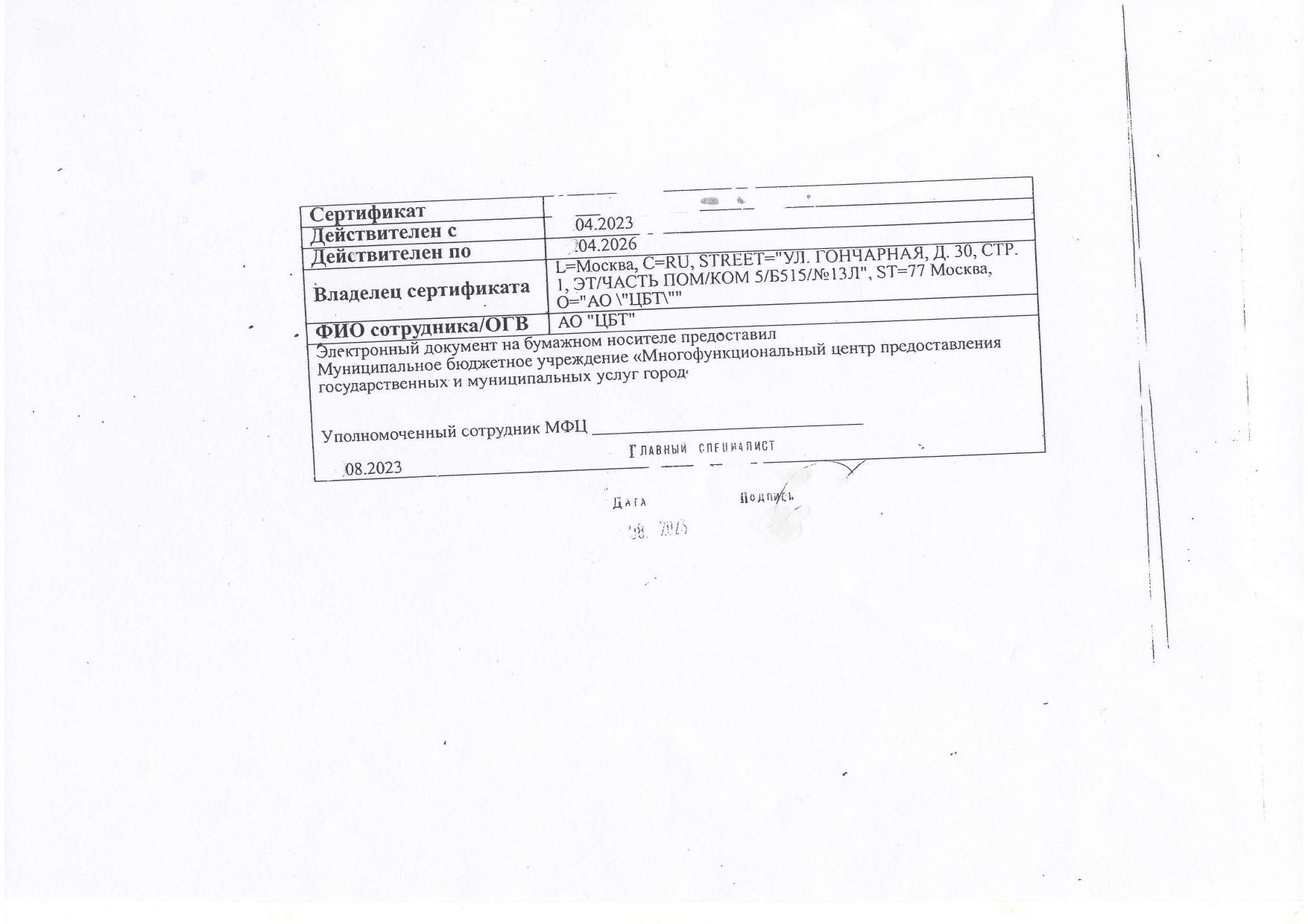 — Какой документ??? Здесь на белом листе реквизиты сертификата электронной подписи ЦБТ!