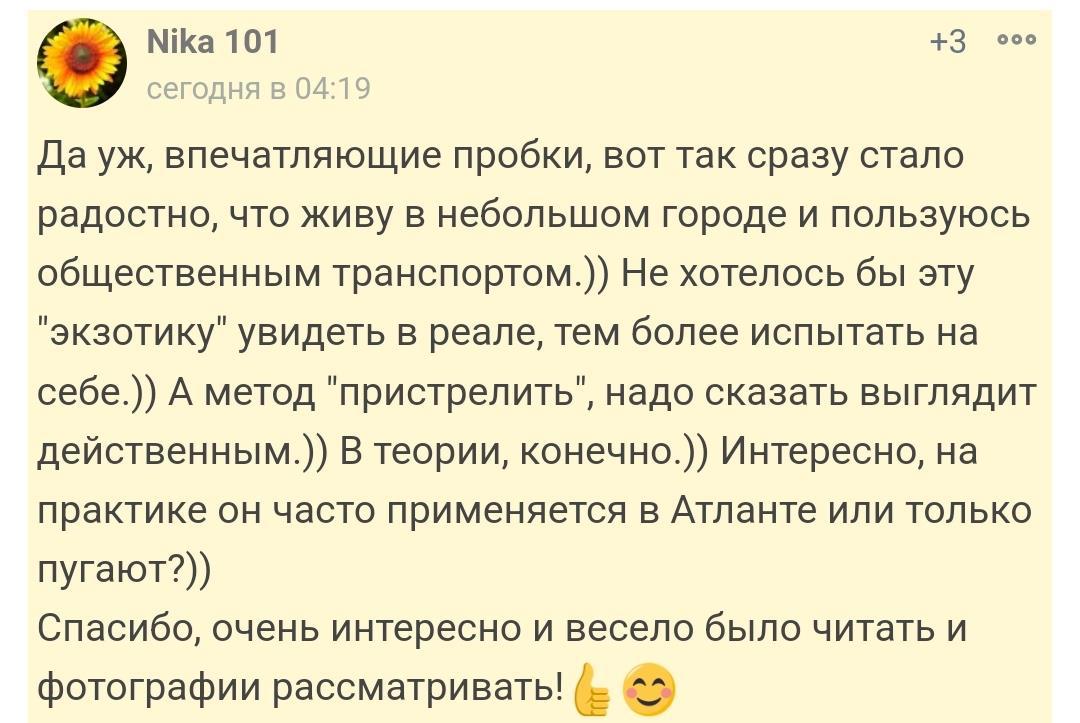 N.B. Я знаю, какие ужасные пробки бывают на московских дорогах, хотя и не видел их своими глазами. Тяжелейший траффик в Париже или Риме мне доводилось видеть самому. В Токио люди ездят больше на великолепном общественном транспорте. И мне было даже неожиданно видеть не такой уж и тяжёлый траффик в Токио. Возможно мне просто повезло. ЛОЛ.