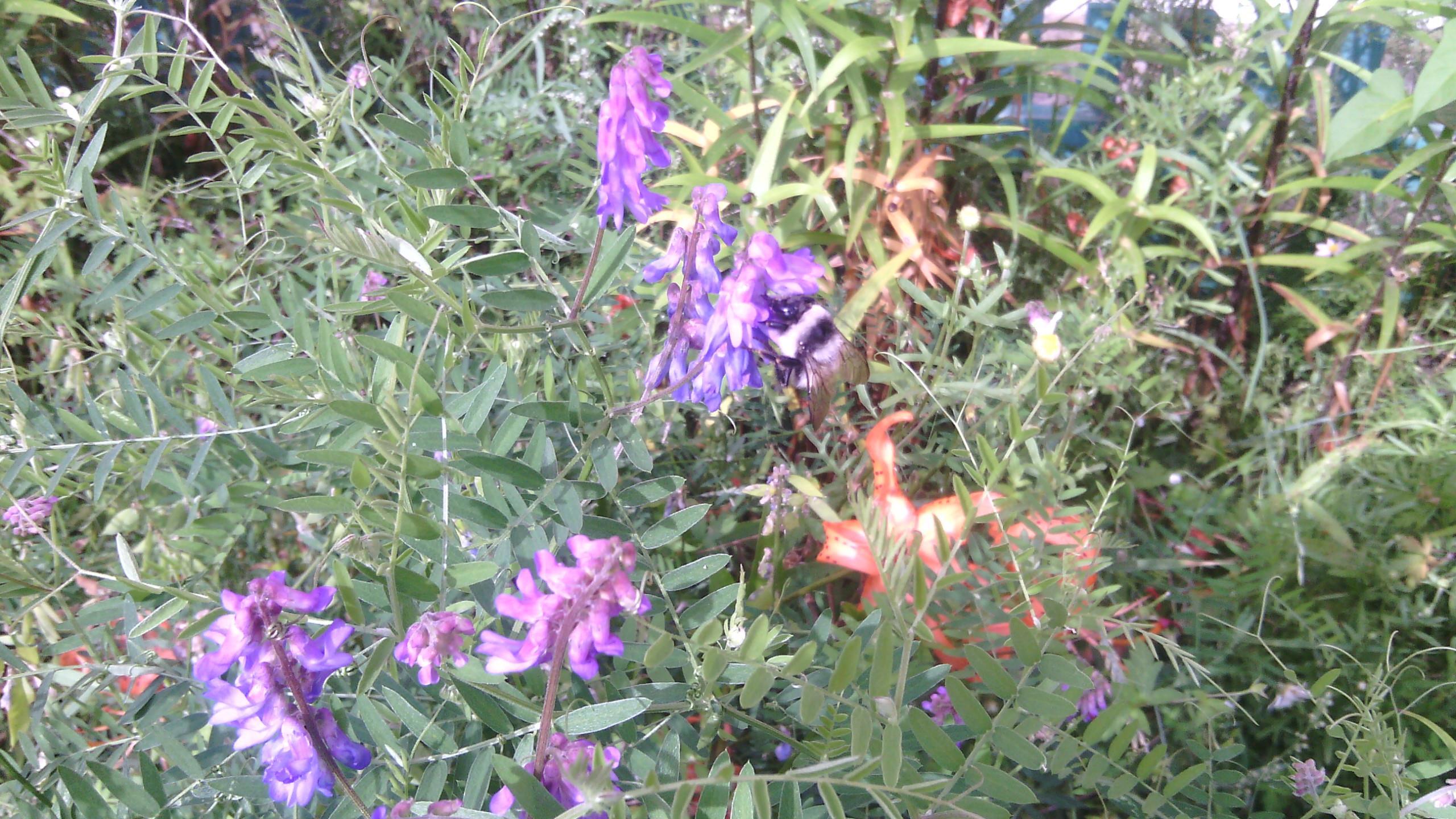 Ну и закончу шмелём. Ещё одним. Этот позировал, но и фотка получилась забавной. Из серии - "догадайся где?"