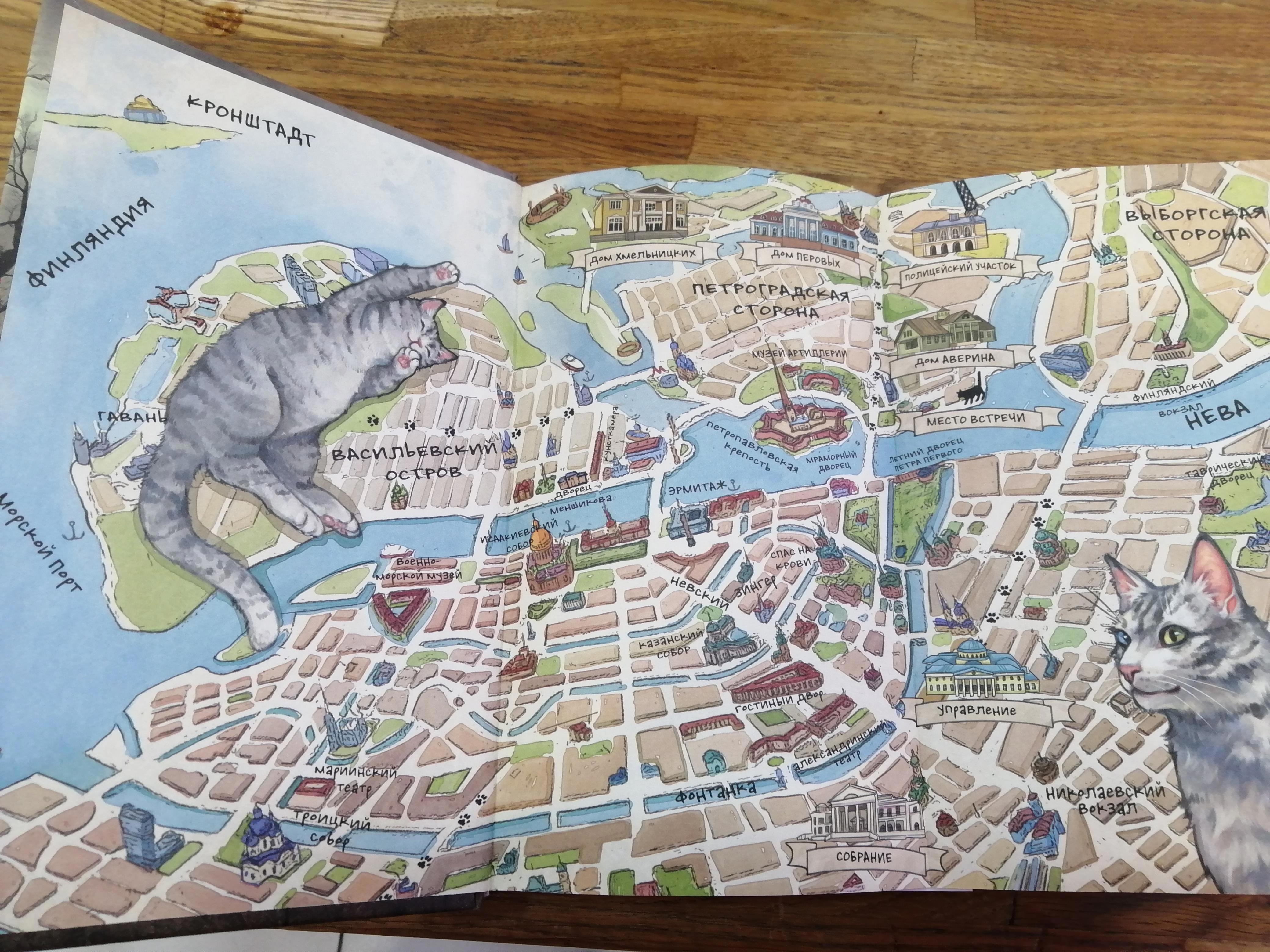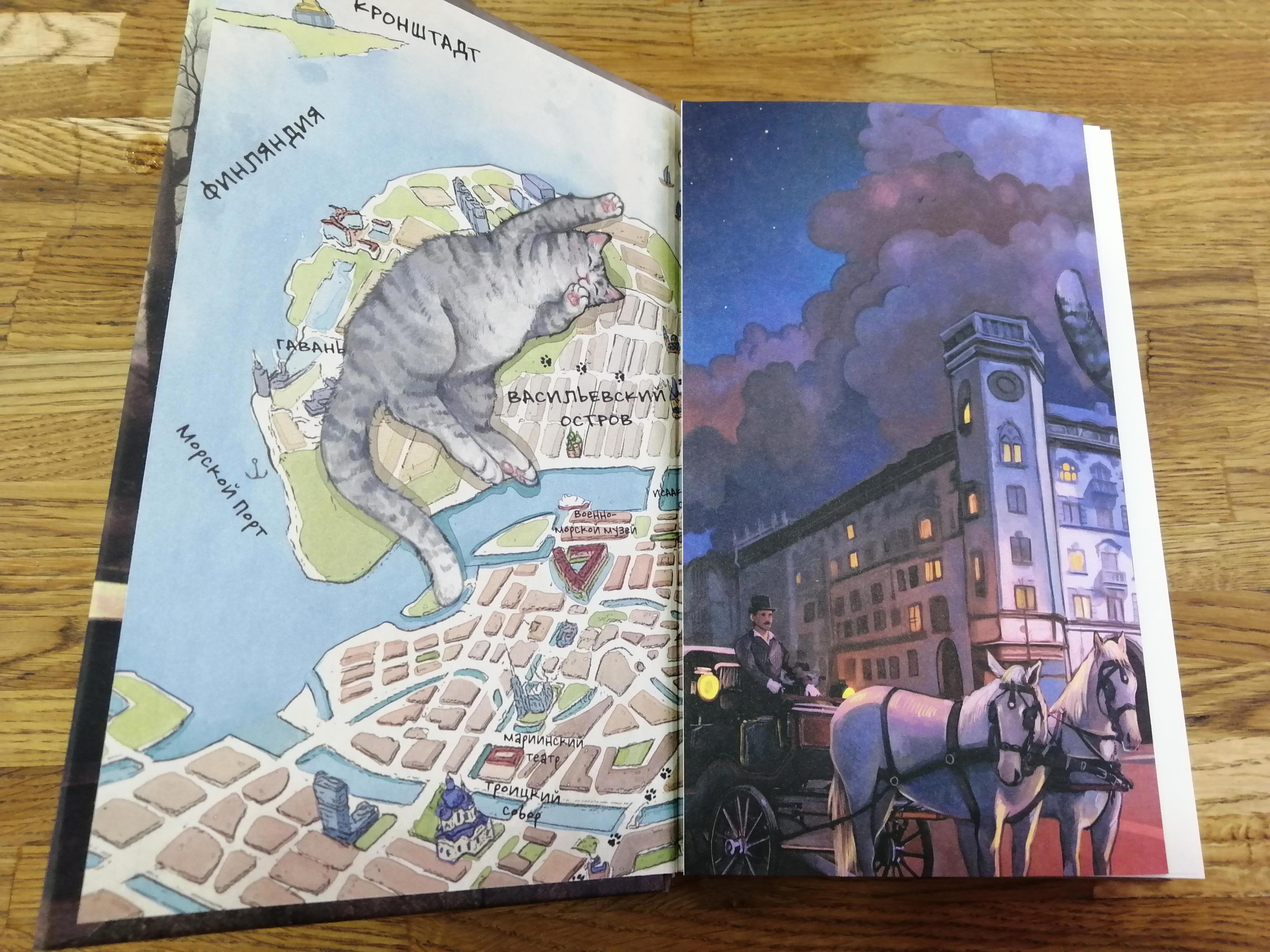 Картинка с лошадками и каретой разворачивается. И перед нами Питер и главный герой котейка Кузя. Ну, разумеется, он не совсем кот, но может и галкой быть, и подростком Кузьмой.
