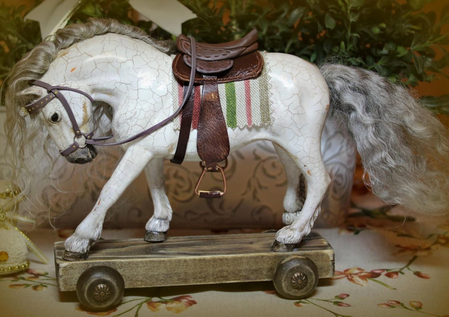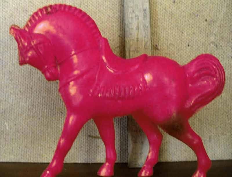 Лошади! Первую я обожала, у неё была сломана нога, которую папа приклеил эпоксидной смолой. Я с ней не расставалась лет до десяти. Милая небольшая, сантиметров 20 в высоту. Вторая конечно монстр по сравнению с ней, величиной с небольшую собаку, из жёсткой пластмассы, покрытой как струпьями пластмассовой имитацией шерсти: