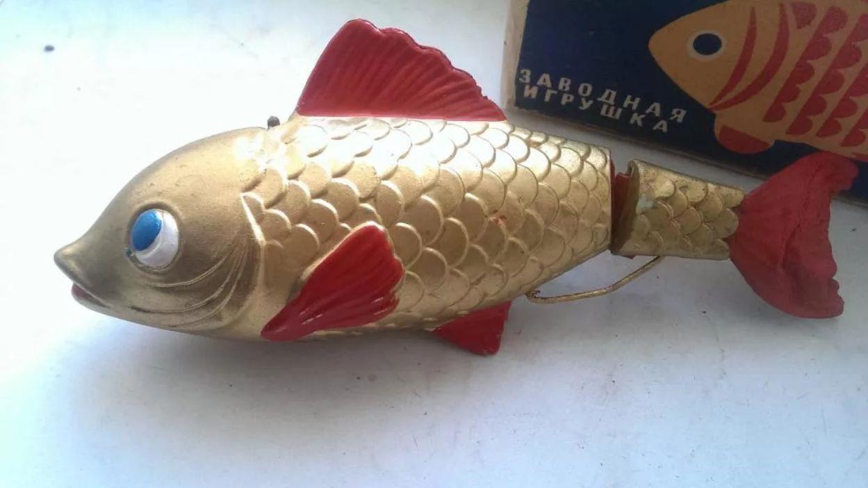 Рыбка! Она сделана из грубой пластмассы, но её можно было завести и пустить плавать в ванной. Довольно большая и тяжёлая, с ладонь взрослого человека: