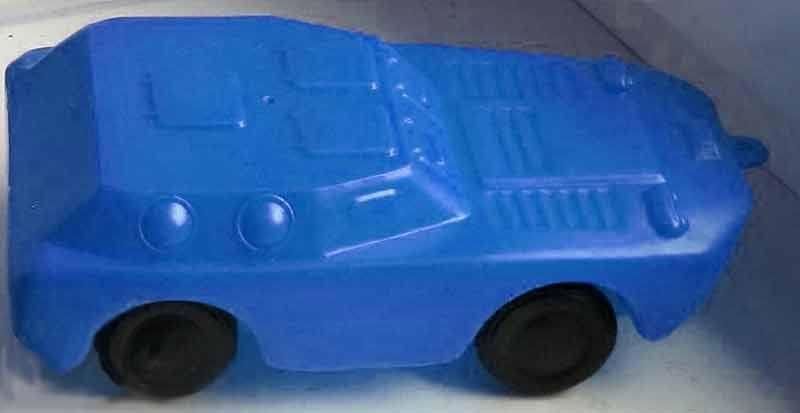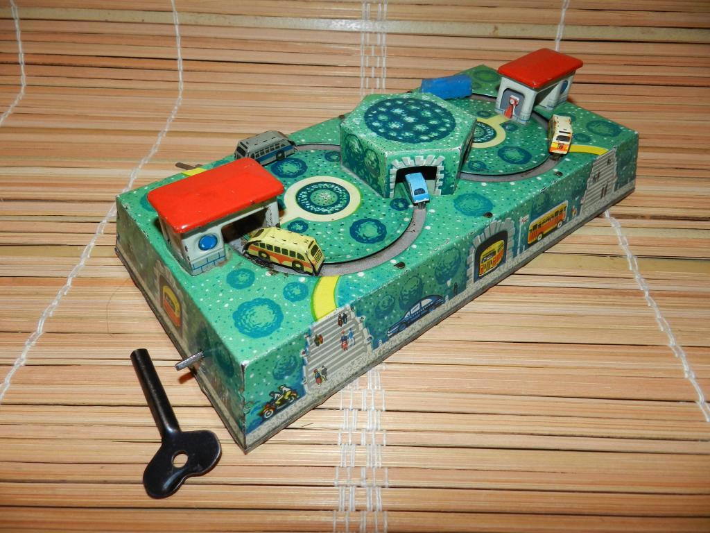 Вторая относительно безопасная, тоже из жести. Заводишь - и машинки начинают ездить. Относительно безопасная из-за размера и веса: запросто можно закатать соседу в лоб таким "железным кирпичом":