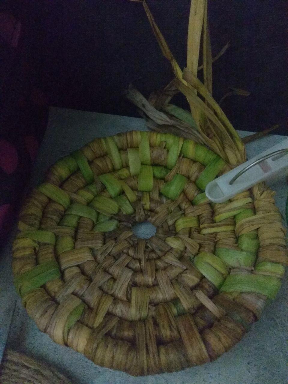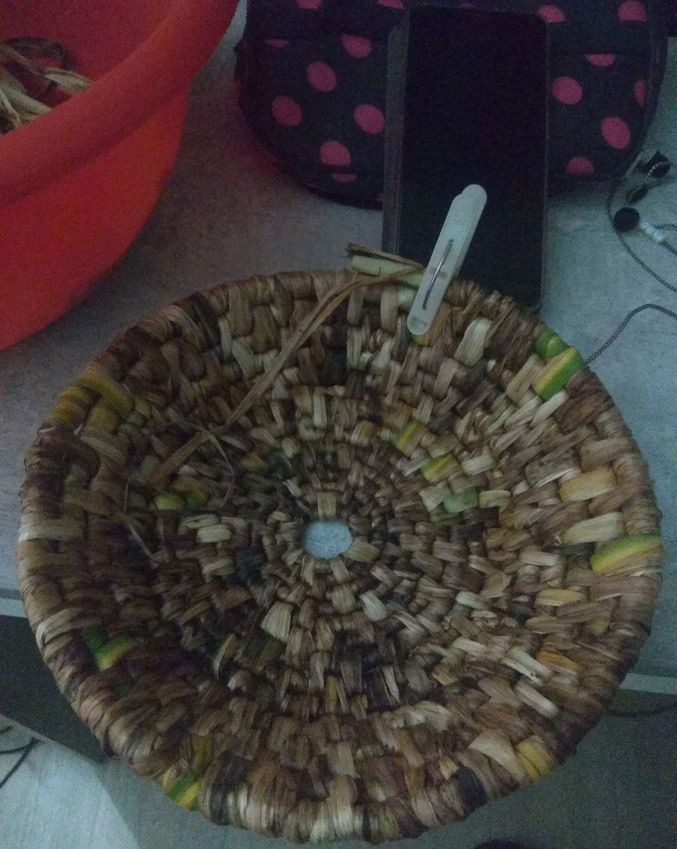 Такой небрежный вариант на скорую руку. Еще влажная потому, что материал перед плетением смачивается водой.
