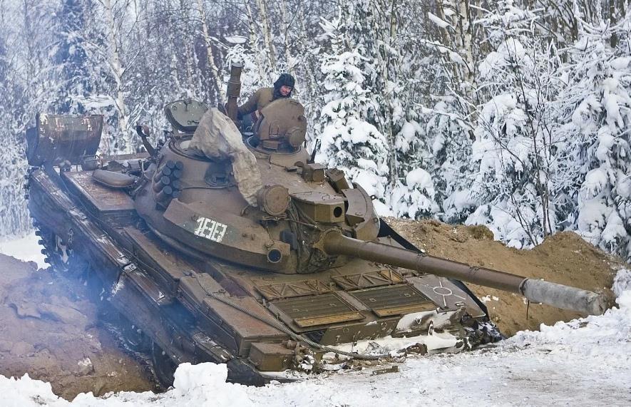 Затем войско по снегу промаршировало перед генералом. Танки понятно не стали заводить, что бы не позориться.