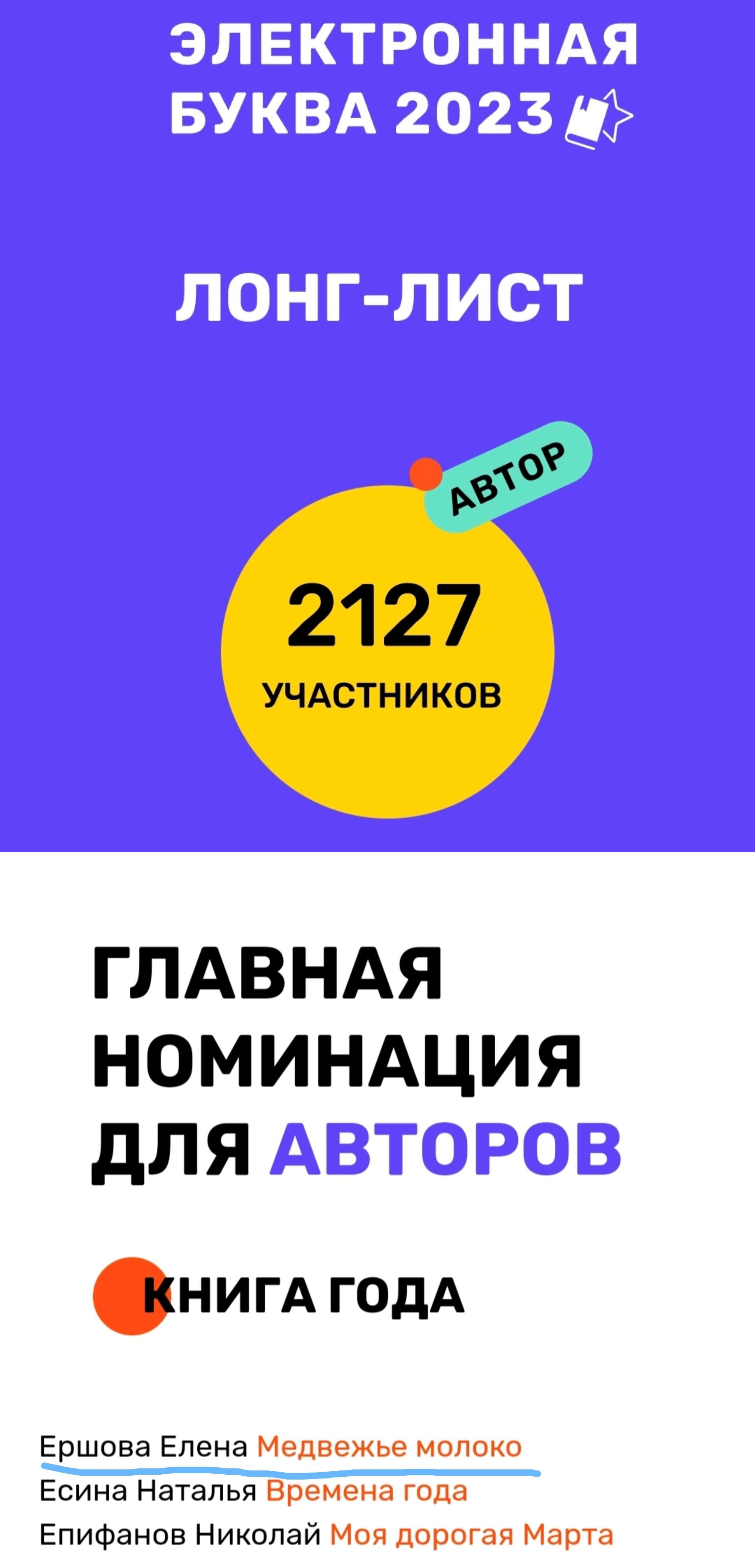 Медведи в лонге "Электронной буквы"! Ура! Поздравляю всех прошедших! Читателям - моя признательность и благодарность
