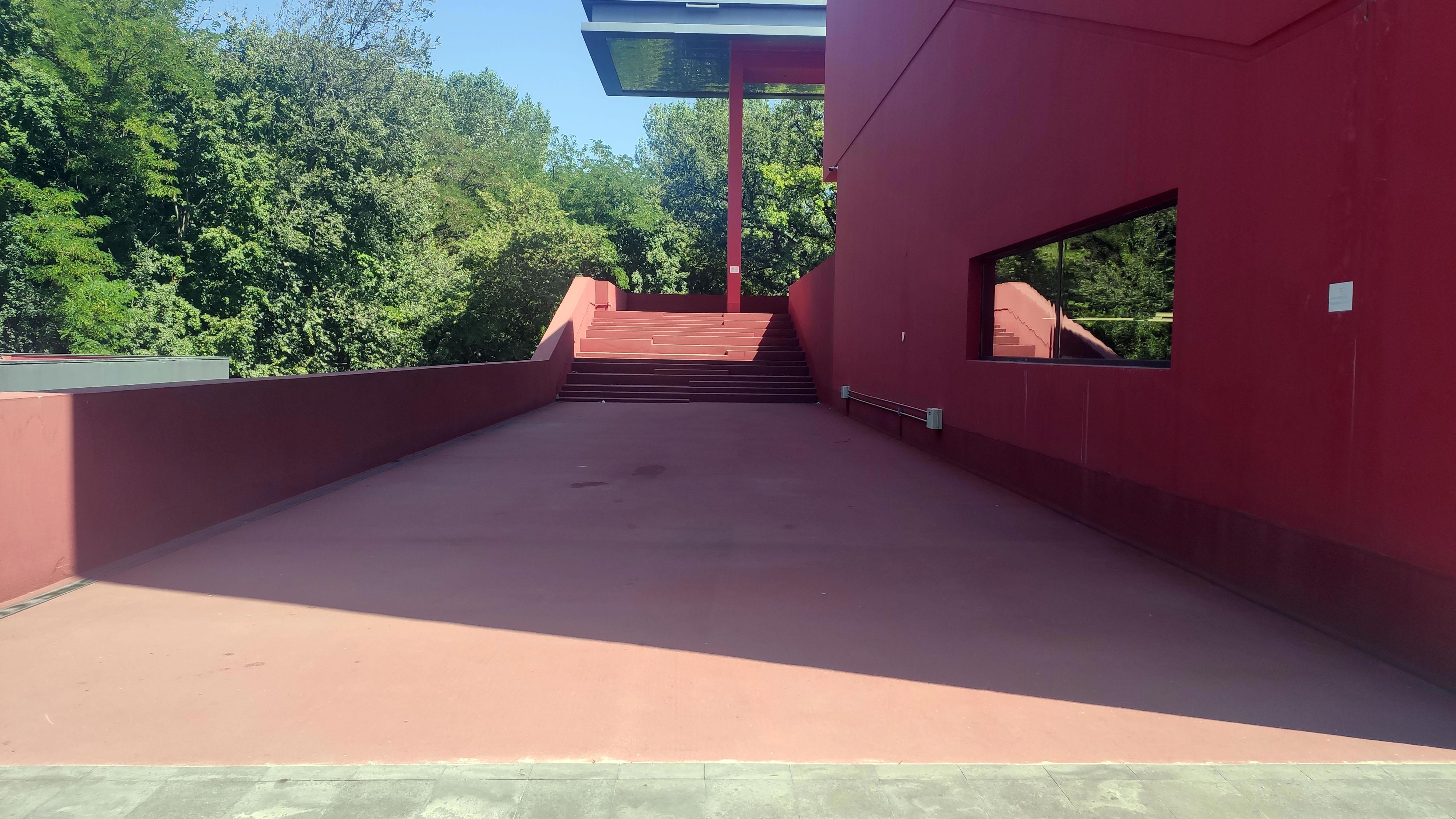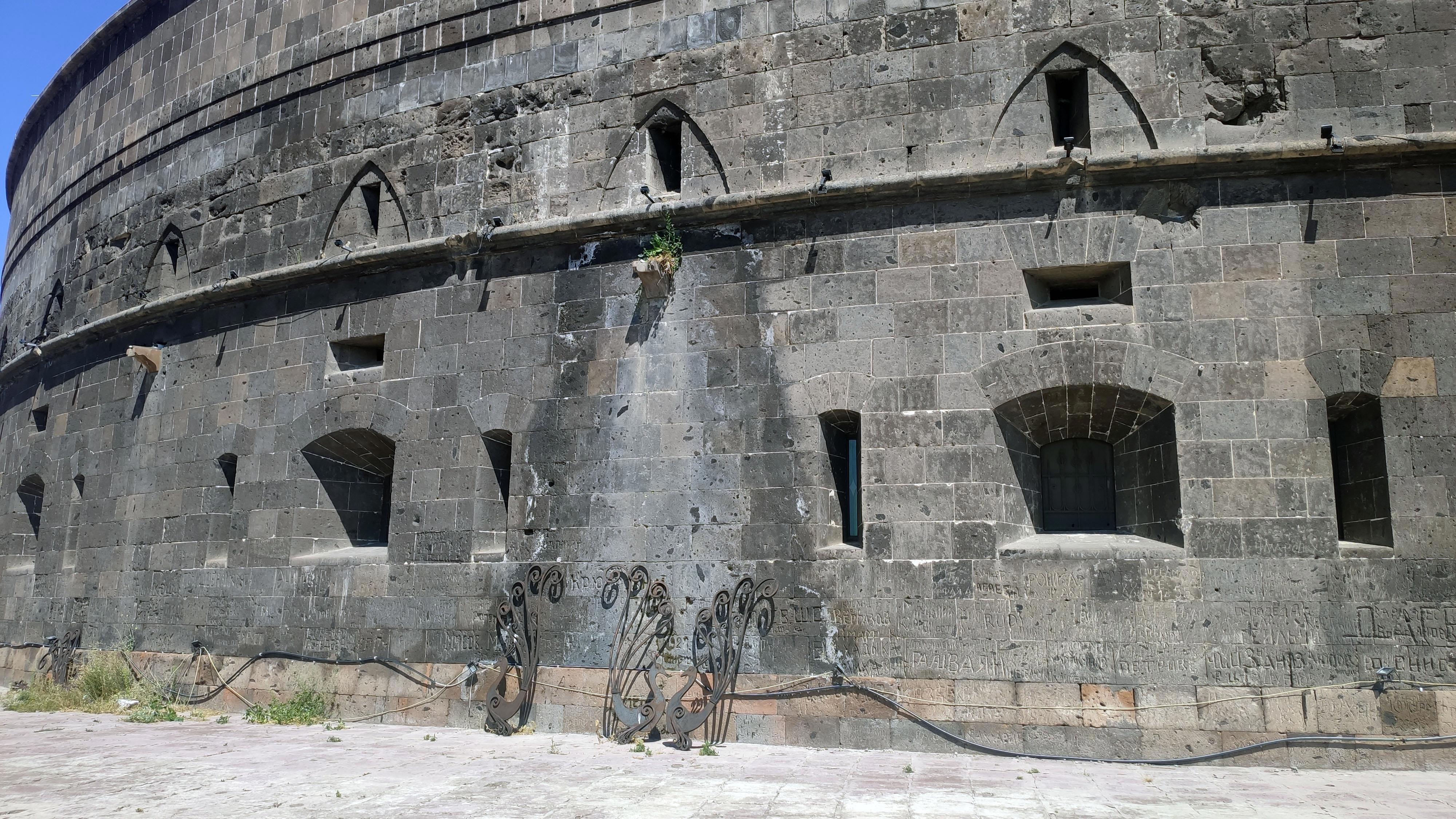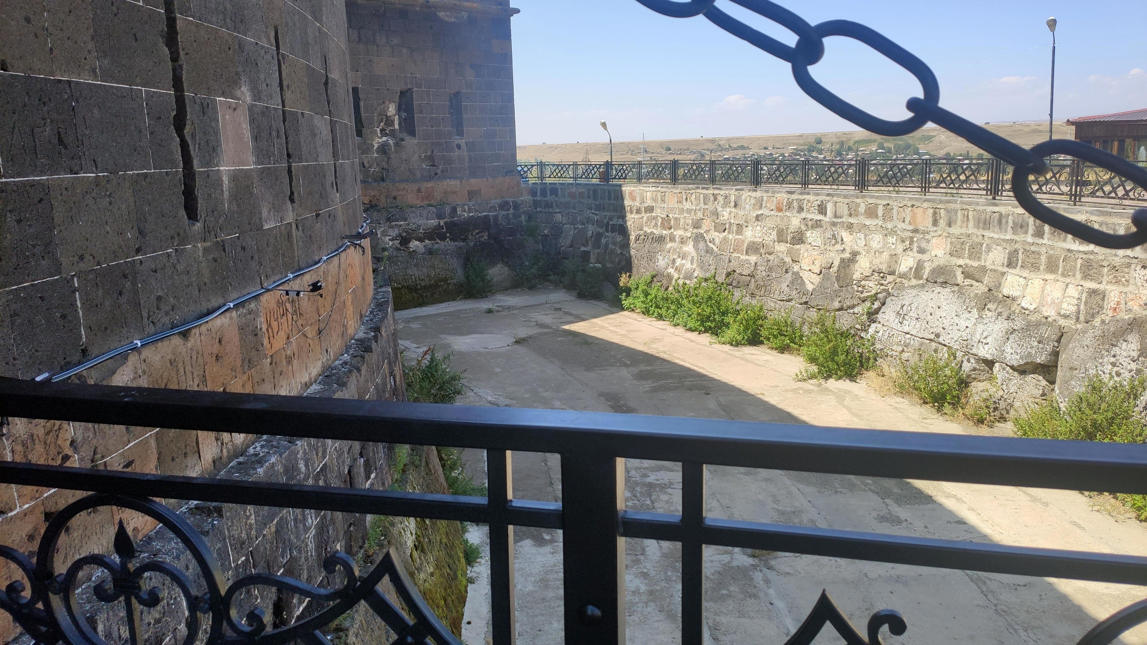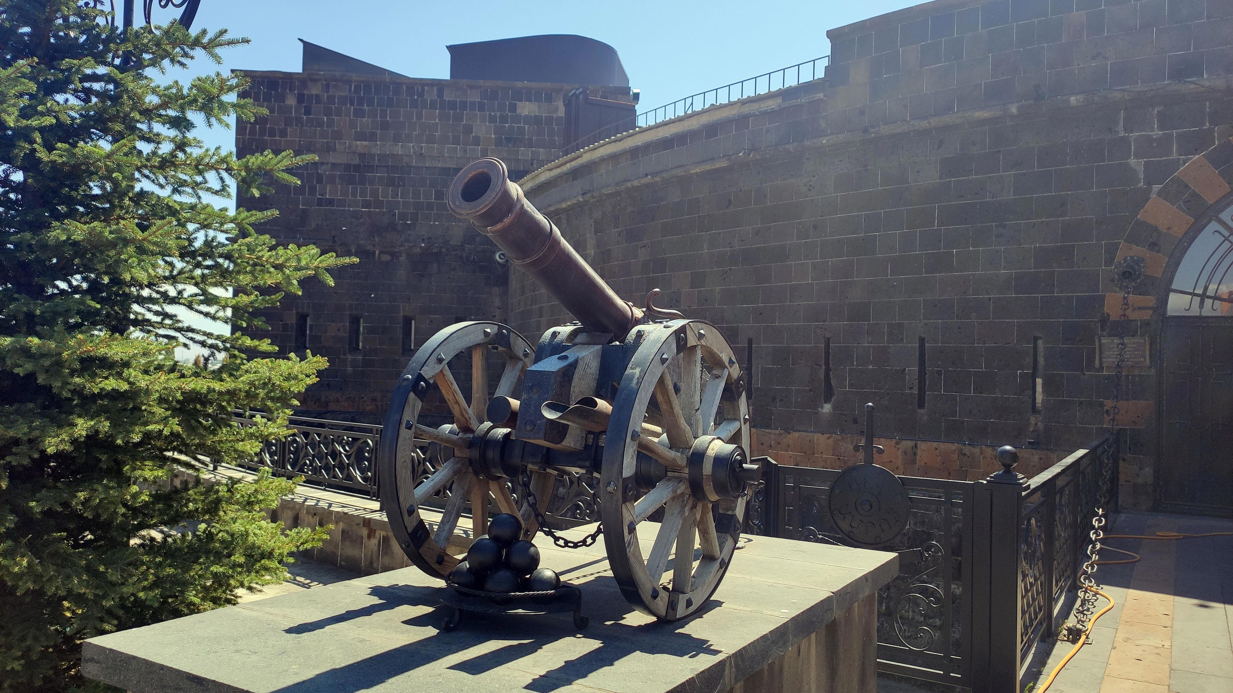 Это восстановленная древняя крепость, тут был ров. Жаль, все фото с общим планом получились неудачные — слишком яркое солнце.