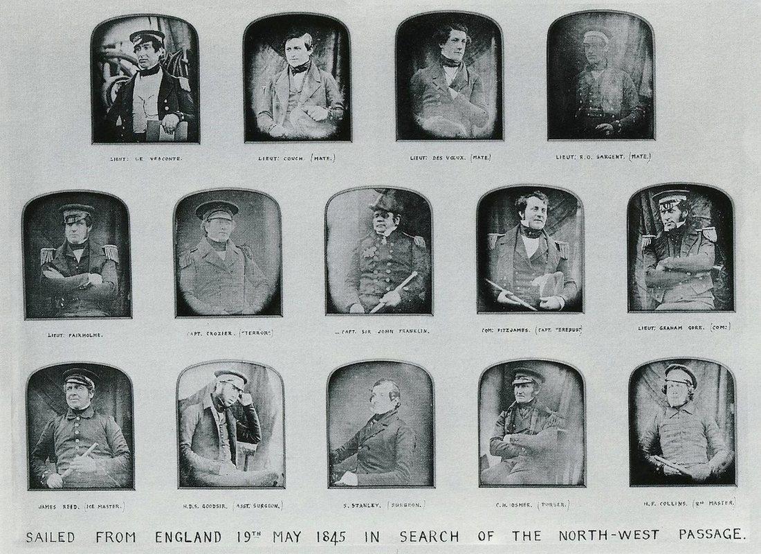 Речь идет о серии дагерротипических фотографий, на которых изображены Джон Франклин и его старшие офицеры, которая была заказана женой одного из участвовавших в экспедиции офицеров британского Королевского флота, скорее всего - самой леди Франклин. Дагерротипия была первой успешной формой фотографии и была изобретена всего за несколько лет до того, как были сделаны эти снимки.
