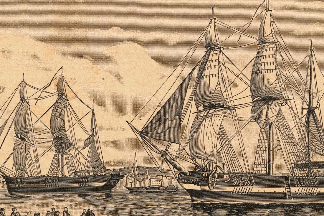 (Экспедиция Франклина вышла в своё последнее плавание 19 мая 1845 года. Сделав остановку в гренландском заливе Диско, где борт «Эребуса» и «Террора» покинули пять чем-то провинившихся матросов (тем самым спасших себе жизнь), корабли с оставшимися 129 моряками на борту отправились дальше, двигаясь вглубь Северного Ледовитого океана...)