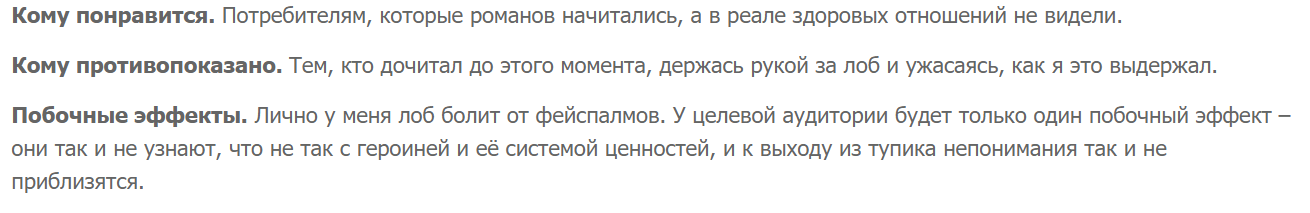 Потом вдруг оказалось что роман не так уж и плох, если его переписать... далее простыня на тему, как его переписать. На мои возражения, что роман я уже давно отпустила и переписывать не собираюсь, финальный аккорд: