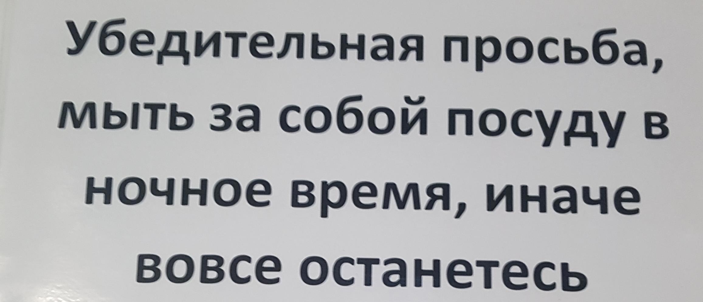 Каюта досталась одноместная, даже с туалетом. Бачок, правда, все время воду спускает с трудом, пластиковая крышка отходит, кнопку не поймать. Ну, да ладно, бывало и хуже. Кондиционер плотно не закрывается, это плохо. Зусман! Кажется, что в зимнее время будет очень холодно, каюта бортовая и стекло одного иллюминатора на лобовой стороне. Где-то объяаление читал, подача пара на кондиционер в холодный период по графику. Это хорошо, наверное. Покрашенно. Оказалось, что горело как- то. Ну, да ладно, второй раз снаряд в одно место не попадает! Может, пронесет. В кают-компании, где типа столовая, висит на переборке странное объявление. Сразу понял, дело не чистое. Тот, кто его так грамотно составил, что-то понимал в проклятиях, не иначе. Ведь, надо же, мол, "вовсе останетесь...". Чувствуюте степень угрозы? Нет? А она есть!