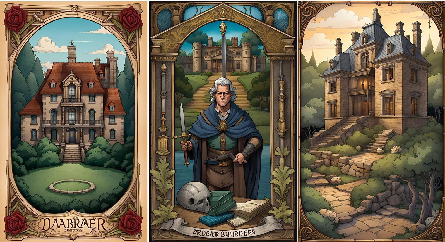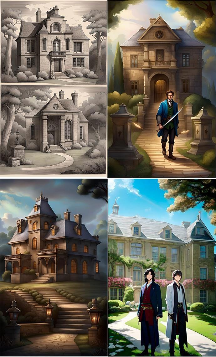 Тут сборная солянка из разных стилей. Больше всего нравится первый столбец, а справа внизу это прям поместье Валентайнов (жаль я не подумал добавить в описание столько ползучих по стенам растений).