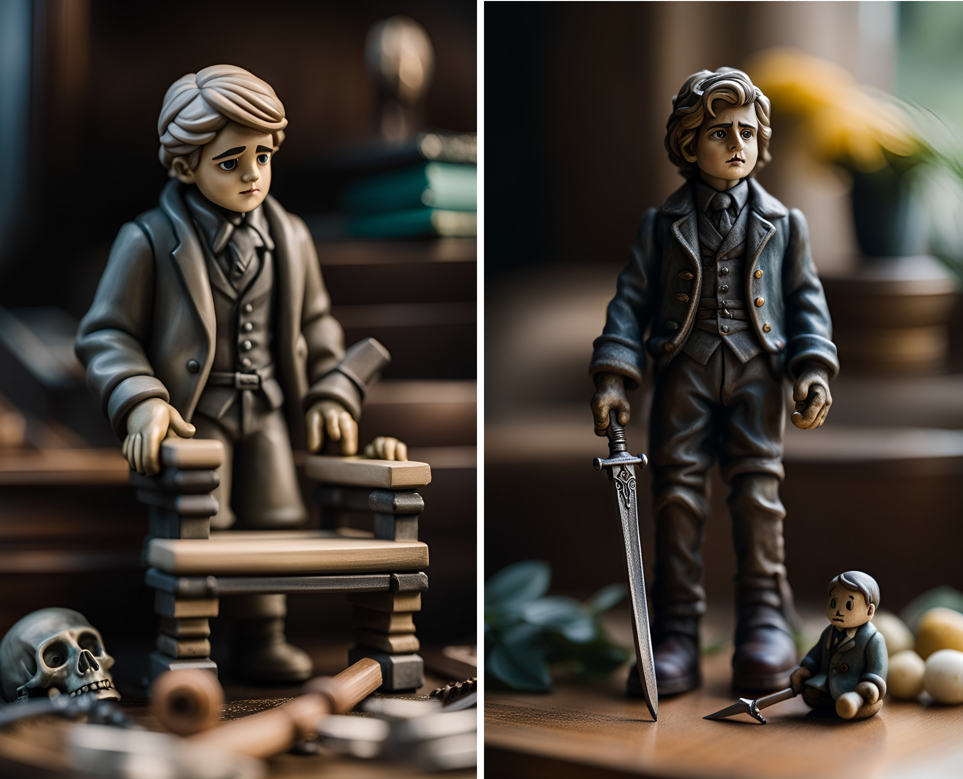 Удивительно, но на второй и третьей нейронка будто пыталась изобразить именно Руперта (причёски, да попытка нарисовать очки), хоть его описания в аннотации и нет. Особенно тот парень, который смотрит вправо находясь внизу (центральная картинка).