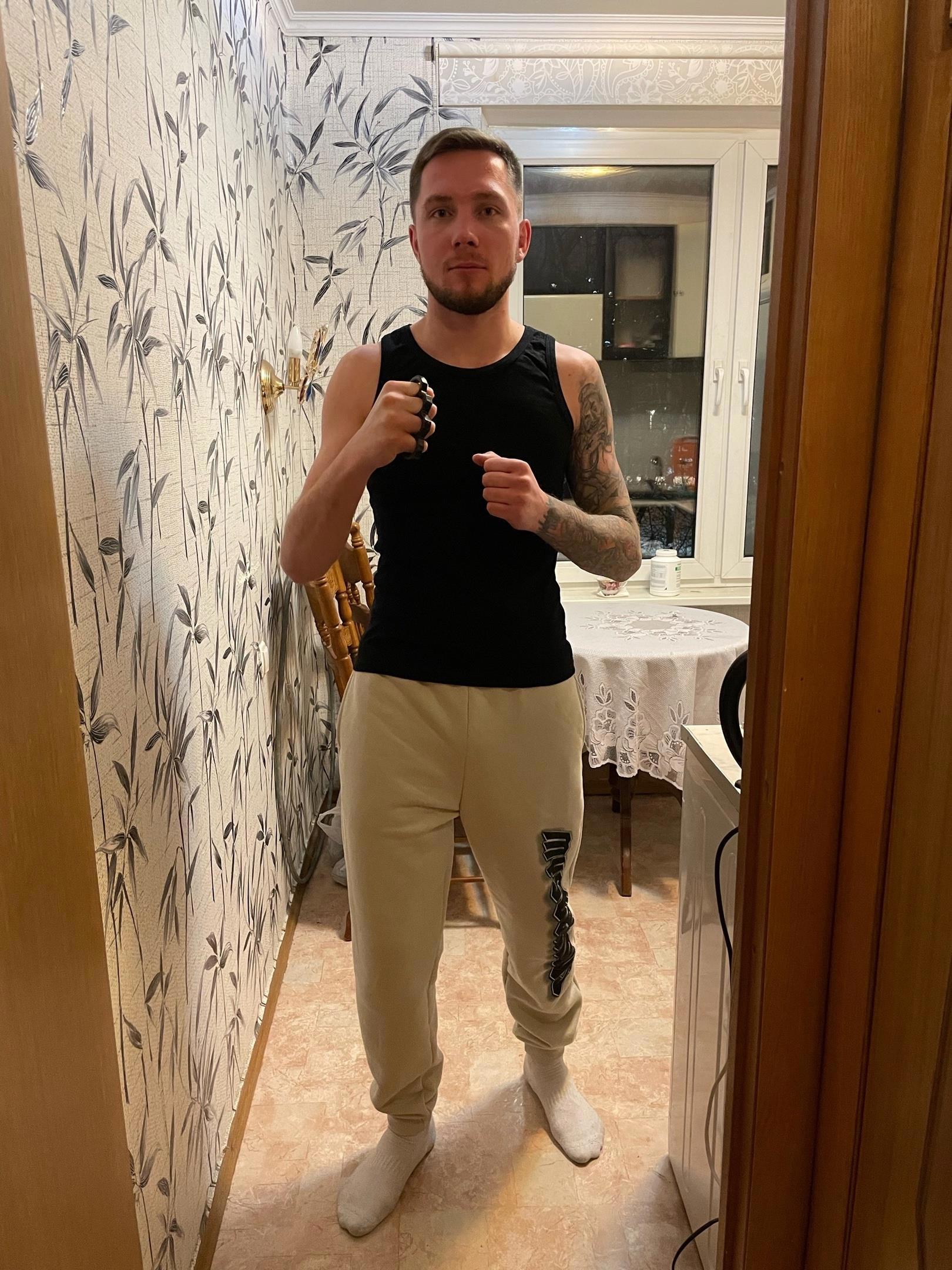 Ему даже штаны изменились, не только лицо ха-ха Но самое главное, что оставили в руке кастет!