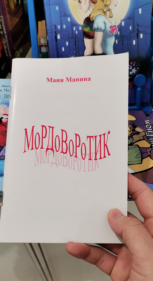 Это фотографии стенда под вывеской «Автограф», где были представлены книги конкурса позитивного неформата «Мимо серии»: