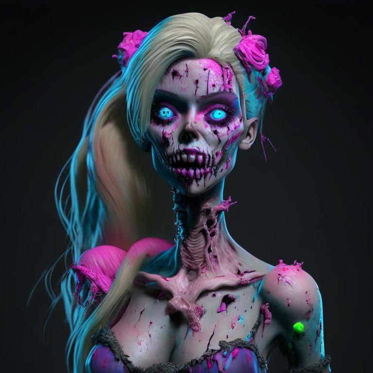 Кен превратился в чёрно-зелёный, разбухший, в два раза увеличившийся труп с расплывшимися чертами. Рядом лежал обтянутый коричневой кожей скелет его подруги. Волосы удержались на черепе, и от этого скалящаяся мумия производила особо кошмарное впечатление. На ней болтались серые тряпки — остатки бордового бального платья, в котором любящая хозяйка положила её в гроб (и, наверное, не одну слезинку уронила!).