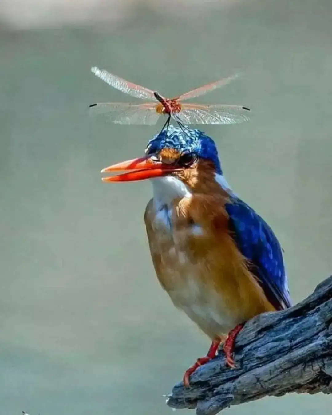 Стрекоза присела отдохнуть на голову "Королевского рыболова"