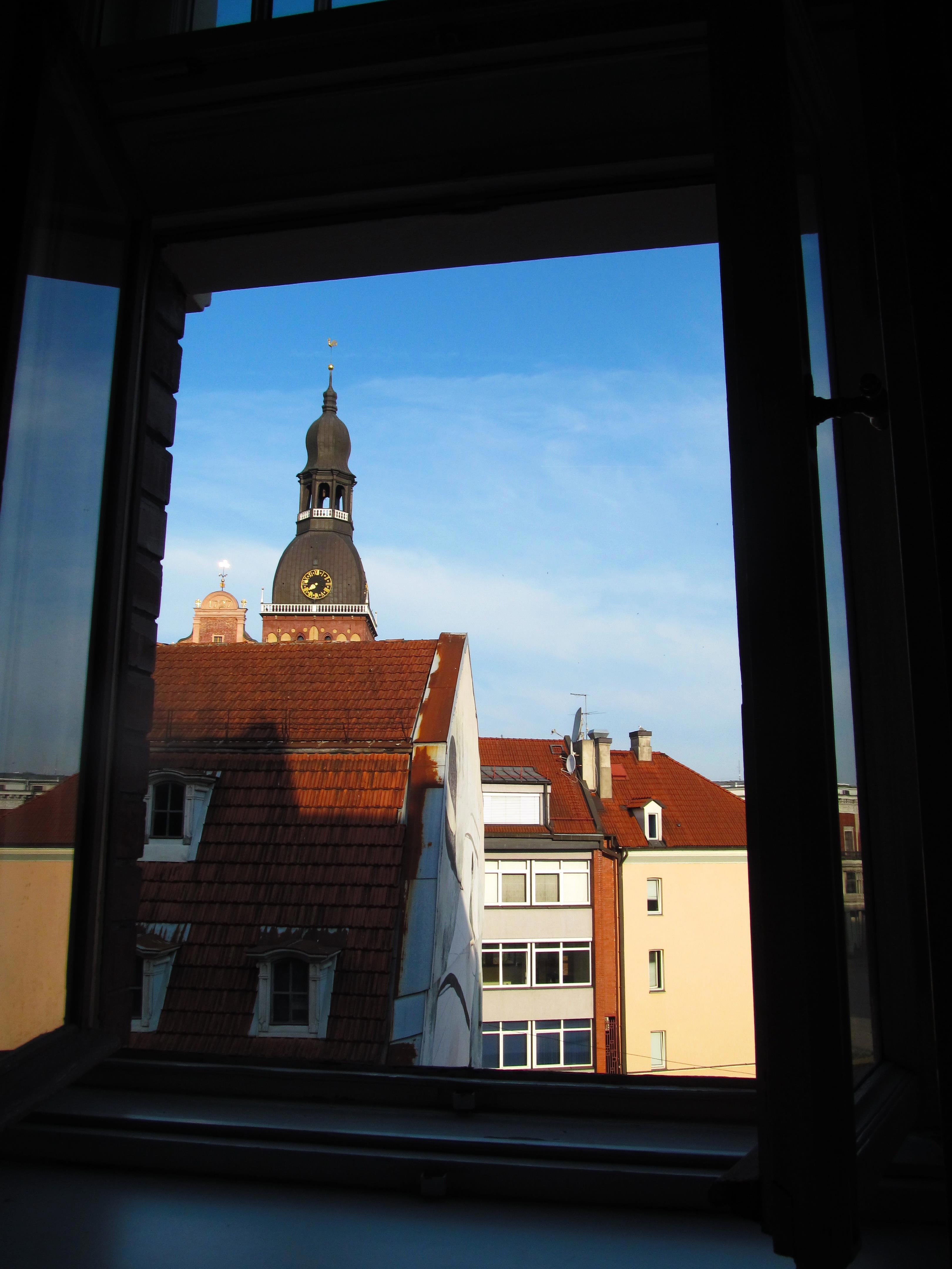 Знали уже, где хостел – в самом центре. Естественно, проплатили заранее, дешево. Однако, на рецепшене сказали - а идите-ка вы... в другое здание. Оказалось еще и лучше! В номере на шесть мест одни мы, там же чайник и банка индийского кофе, советская такая, плоская... Из окна – шикарный вид на Домскую площадь,